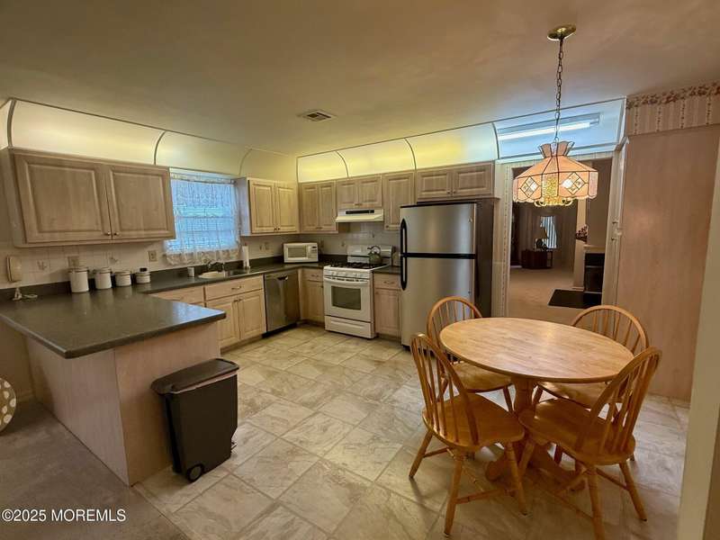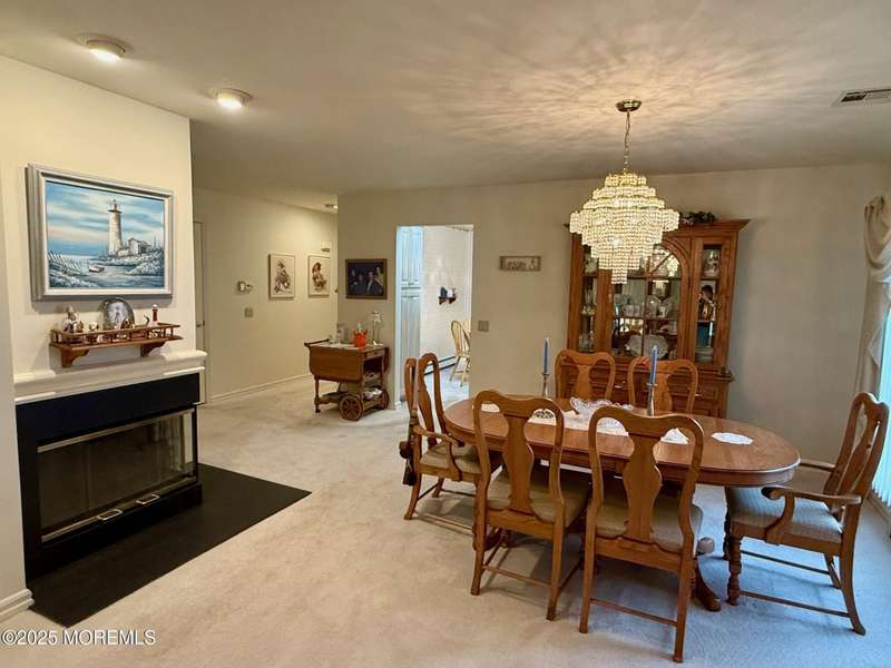 This charming home features an open floor plan. Located in Holiday City West this Lexington Model offers a Lovely Primary with walk in closet and full Bath, shower stall, tiled flooring and single vanity. Formal Living Room Dining Room combo w/ gas fireplace. Newer eat in Kitchen with L shaped counter tops, laminate floors and is open to the Family Room that has slider that leads to a beautiful deck. Laundry Room off of the garage. Whole house has tinted windows. Baseboard heat. ALL Newer... Roof, Furnace, AC and water heater. GREAT house GREAT location..