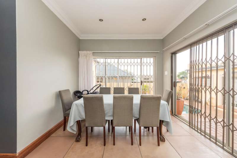 A Timeless Kensington Gem Discover the epitome of elegance and functionality in this stunning corner property nestled in the heart of Kensington. This exquisite family home offers a harmonious blend of classic charm and contemporary comforts, making it the perfect haven for discerning individuals and growing families. A Welcoming Entrance Step into a world of sophistication as you enter the thoughtfully designed entrance hall, now transformed into a productive home office. This versatile space provides the ideal setting for remote work or quiet study. Spacious Living Areas The spacious lounge, bathed in natural light, invites relaxation and entertainment. The open-plan kitchen, a chef's delight, boasts a gas stove, ample counter space, and a central island perfect for culinary creations. The adjacent dining area, comfortably seating eight, seamlessly flows into a second lounge, providing multiple options for gathering and unwinding. Luxurious Bedrooms The home offers three generously sized bedrooms, each designed with comfort and privacy in mind. The master bedroom, a true retreat, features a walk-through wardrobe and a luxurious en-suite bathroom. The remaining two bedrooms, both with en-suite bathrooms, provide ample space and storage. Charming Details High pressed ceilings and immaculate finishes add a touch of timeless elegance to every corner of this home. The passageway, adorned with ample cupboard space, offers convenient storage solutions. Versatile Cottage A separate cottage, ideal for guests or rental income, provides an open-plan living space, a well-equipped kitchen, and a full bathroom. Outdoor Oasis The outdoor entertainment area, overlooking a sparkling pool, is perfect for hosting gatherings and enjoying the warm South African weather. Dual access, with two carports and a three-car garage, offers ample parking and convenience. Modern Conveniences This home is equipped with modern amenities, including prepaid electricity, a gas geyser, and an electric fence for added security. A Kensington Dream Experience the best of Kensington living in this exceptional property. With its timeless appeal, versatile spaces, and modern conveniences, this home is sure to captivate your heart.