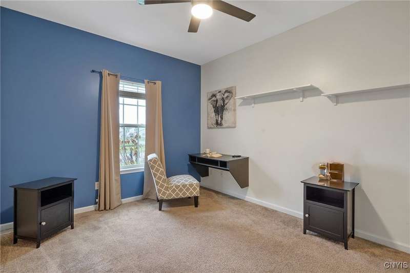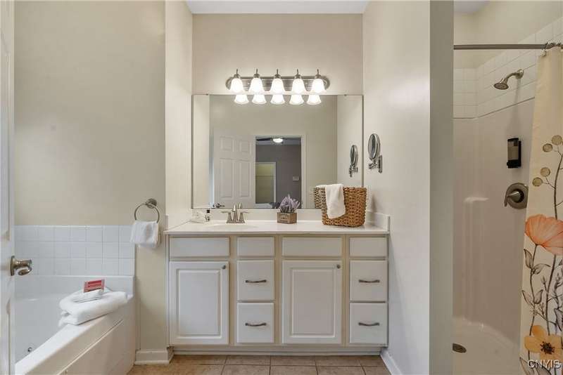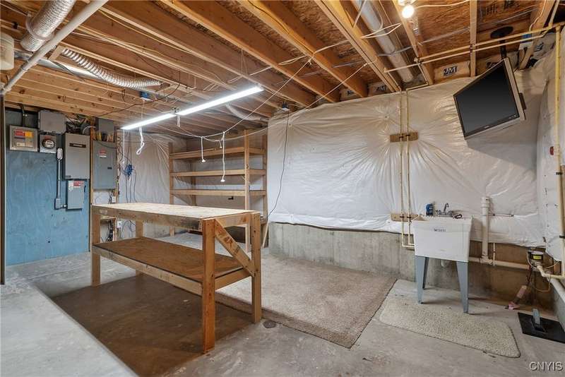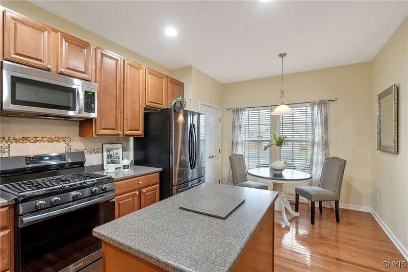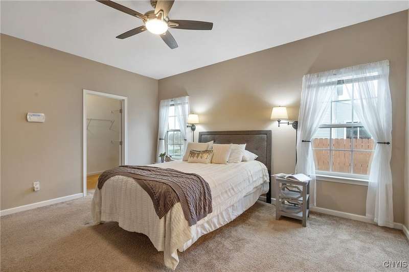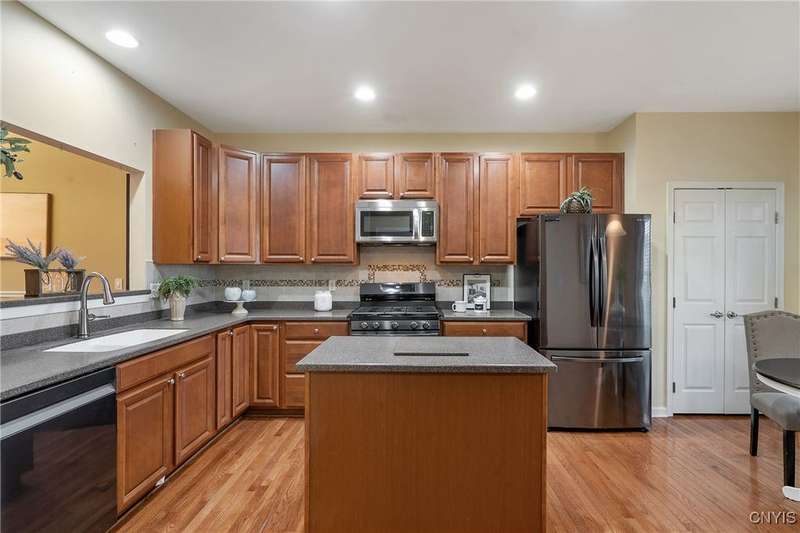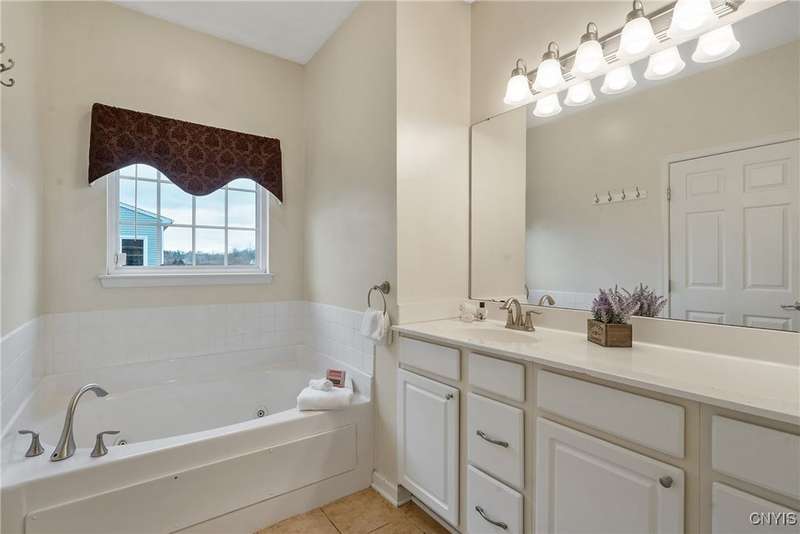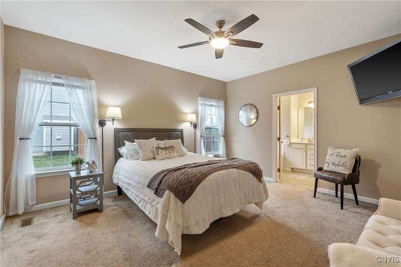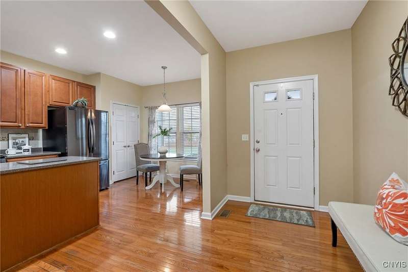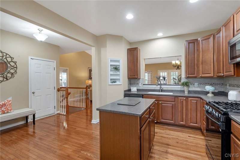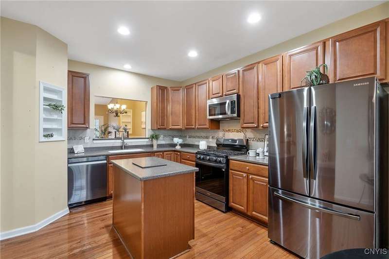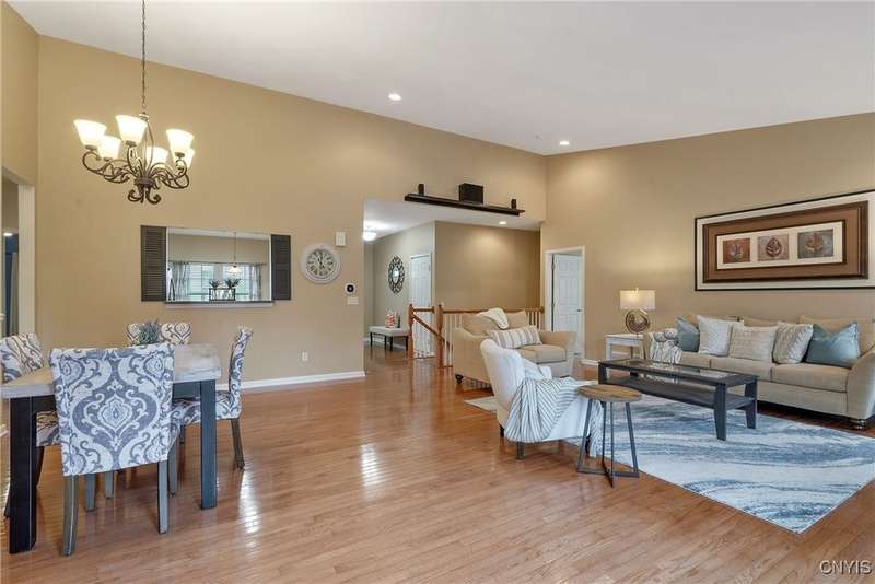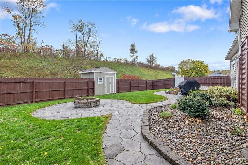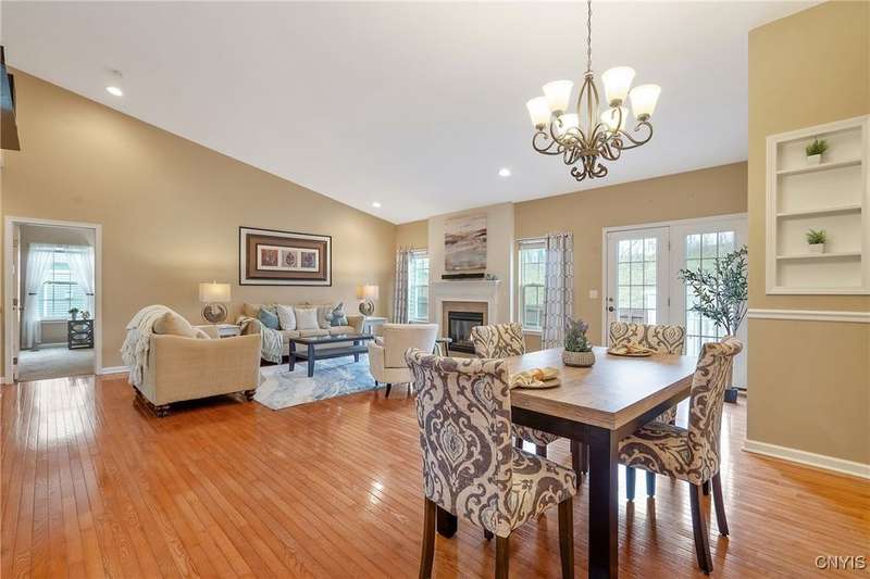 Discover this beautiful 4-bedroom, 3-bath ranch home in Harbor Heights?a perfect blend of comfort, efficiency, and style. With owned solar panels, providing low utility costs and tax incentives, plus a whole-house natural gas generator for year-round peace of mind, this home offers exceptional single-level living with plenty of space to relax and entertain.The double-wide driveway with an extra sparking space welcomes you. Pull into your attached two car garage with an epoxy coated floor! A charming front porch and standout curb appeal welcome you inside to a warm, inviting foyer. The well-designed kitchen features updated appliances, generous counter and cabinet space, convenient pull-out cabinet trays and a convenient pass-through to the great room?ideal for hosting or everyday convenience. Notice the built in curios that add charm and interest to this modern home! The spacious great room impresses with cathedral ceilings, genuine hardwood floors, a gas fireplace and seamless flow into the formal dining area.Step through the French door to enjoy the low-maintenance deck and beautifully hardscaped patio with a built-in fire pit, all within a fully fenced backyard with no homes behind!?perfect for outdoor gatherings or quiet evenings at home.The primary suite offers a peaceful retreat with its en-suite bath featuring a jetted tub. Two additional bedrooms, convenient first floor laundry and a full bath complete the main level.The fully finished basement adds exceptional living space, including a bar area, a "hidden" bedroom with egress window (behind the bookcase Murphy door!), an additional full bath, a workshop and abundant storage. (Total 2,634 sq ft includes finished basement.)Set on a fantastic lot in a prime location, this home is close to all amenities and just moments from the community park with a pavilion/BBQ area, basketball court, and playground?all within the award-winning Baldwinsville School District.A one-year home warranty is included for added peace of mind. Energy-efficient, meticulously maintained, and truly move-in ready?this Harbor Heights gem has it all!