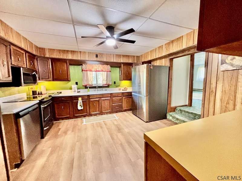 Welcome to this inviting 3-bedroom, 1.5-bath home in the heart of Hooversville. The spacious first floor features a large bedroom that can easily function as a suite, providing privacy and comfort. Upstairs, you'll find two additional bedrooms. This home also boasts a durable metal roof and a two-car integral garage, which is heated by a convenient pellet stove, ensuring warmth in colder months. Step outside to enjoy the partially fenced backyard, perfect for outdoor activities, along with a useful shed for extra storage. Nestled in a welcoming community, this home seamlessly combines the ease of suburban living with the charm of small-town life. It's ready for you to move in and make it your own!