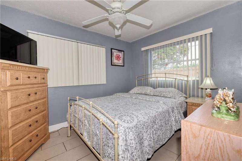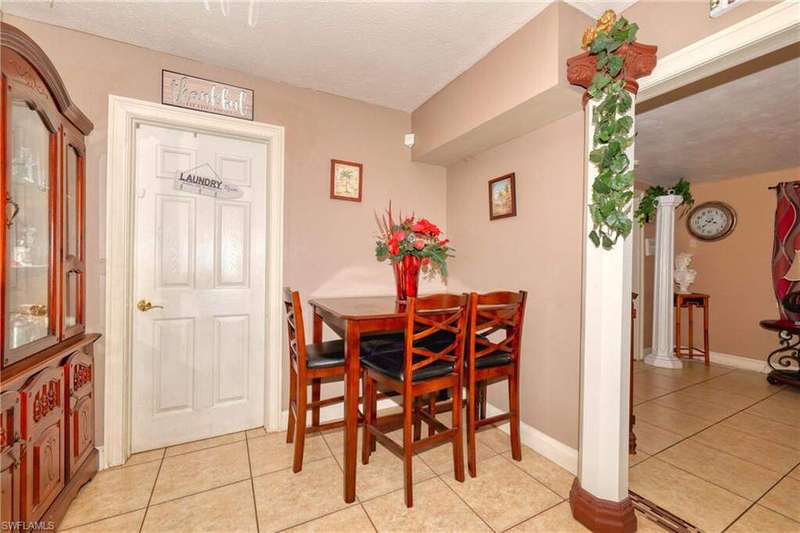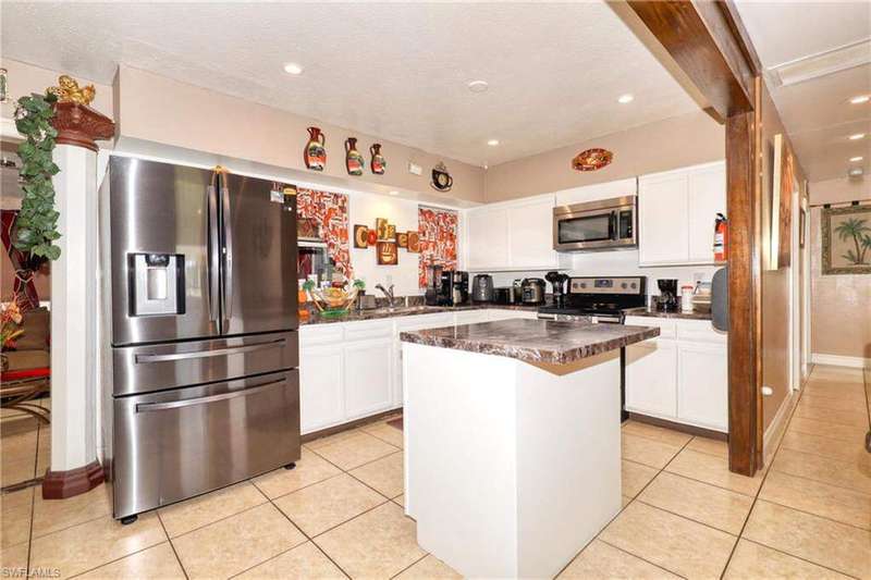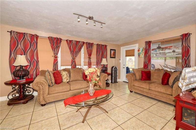 Welcome to 13350 First St, a beautifully maintained 4-bedroom, 2-bathroom home offering 1,961 sq. ft. of living space and a total of 2,877 sq. ft. Set on a generous 0.33-acre corner lot, this home blends comfort, space, and thoughtful upgrades in a prime Fort Myers location close to schools and Manatee Park. Inside, you'll find tile flooring throughout for a clean and timeless look. The spacious kitchen is the heart of the home, featuring Whirlpool stainless steel appliances and abundant storage-ideal for both daily living and entertaining. The oversized master suite is a private retreat with soaring ceilings, a large walk-in closet, and a luxurious bathroom complete with a jetted soaking tub, dual-sink vanity, and an oversized walk-in shower. Step outside to enjoy the Florida lifestyle on the large screened-in lanai, perfect for outdoor dining or relaxation. The new privacy fence (2024) surrounds a spacious backyard with plenty of room for children, pets, or even a future pool. A new roof (2023) provides added peace of mind and long-term value. With its expansive layout, premium corner lot, and proximity to parks, schools, and everyday conveniences, this home truly has it all.