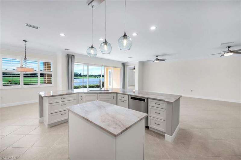 Welcome to this beautifully remodeled 2-bedroom + den, 1st-floor condo with breathtaking lake, golf course, and preserve views in the sought-after Shadow Wood Preserve. Most amazing location on the cul-de-sac with plenty of side yard privacy Enjoy spectacular sunsets from the comfort of this open-concept unit featuring tile floors throughout, crown molding, and a newly renovated island kitchen with a walk-in pantry. The spacious owner's suite offers dual walk-in closets with built-ins, a luxurious bathroom with a separate soaking tub, and a walk-in shower. Both bathrooms have been tastefully remodeled. The oversized, private 2-car garage provides ample storage. Pet friendly. Optional memberships are available to Shadow Wood Country Club and The Commons Club. Enjoy 54 holes of championship golf, 9 Har-Tru tennis courts, pickleball, bocce, walking trails, a community pool, and kayak access on Mullock Creek. With membership, you'll also have access to the private beach club on Little Hickory Island, a state-of-the-art fitness center, a full-service spa, and private dining. All are nestled in a secure, guard-gated community close to Beaches and RSW Airport. Start living the Florida lifestyle you've been dreaming of - move-in ready and maintenance-free. Beautiful community to walk or bike ride.