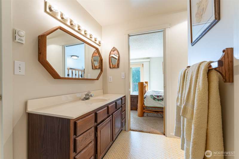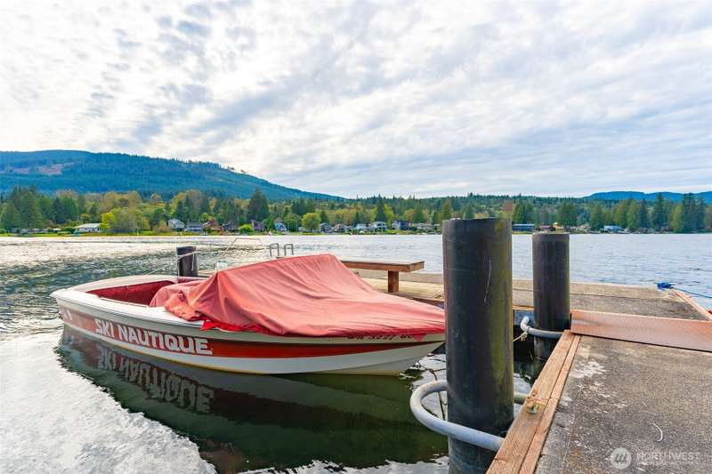 This lake-view gem is perfect as a primary residence, short-term rental, vacation getaway, or summer home—offering the ideal blend of comfort and lake lifestyle. Enjoy deeded access to a private shared lakefront lot & dock with boat slips just across the street, plus a 26x38 shop for all your lake gear and toys. The 1,820 sq ft home features 3 beds, 2 baths, plus a flex room, and a spacious primary suite with a private balcony & walk-in closet. Cozy up by the wood-burning fireplace in the winter or take in year-round lake views from the covered front deck. The large backyard is a blank canvas ready for bringing your gardening dreams to life. Located on a peaceful dead-end street with no HOA and easy I-5 access, this is a rare find!
