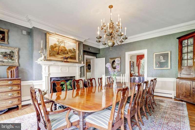 Hickory Ridge - one of the region's premier historic estates, offering classic period details & exemplary materials and craftsmanship on 19.47 acres in Highland, MD. The estate comprises the exceptional Manor House, a charming 1749 cottage/guest house, Carriage House/office, an English greenhouse, and first-class equestrian facilities. The Manor House boasts high ceilings and spacious rooms, including a stunning reception hall, formal living room, gracious dining room, a large, modern kitchen, original 1789 kitchen now used for family dining, paneled library, sunroom, and a mud room. Large bedrooms and modern baths occupy on the upper two levels, and the lower level features the incredible Jockey Club Pub (see photos) and an adjoining rec room. Working fireplaces grace the formal rooms, bedrooms, and the original kitchen. A large, covered side porch overlooks a lovely, recessed garden, and brick walkways lead to an underground wine cellar and a 50x25 heated pool. The bucolic setting is meticulously landscaped & graced by specimen trees, historic boxwoods, stacked-stone walls, & English-style gardens. Equestrian facilities include a 9-stall barn, a separate tack room & gym, double-fenced paddocks, and run-in sheds. Completing the grounds are a 3-car garage & a large equipment shed. Approached by two tree-lined lanes, this historic estate offers luxury and comfort for family living, elegant space for grand entertaining, first-class equestrian facilities, and a rare close-in sanctuary for those seeking privacy with easy access to area amenities.
