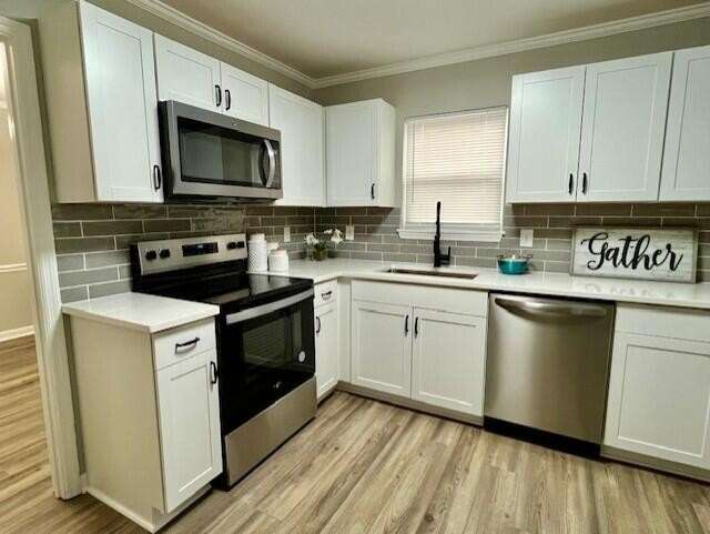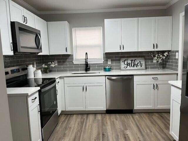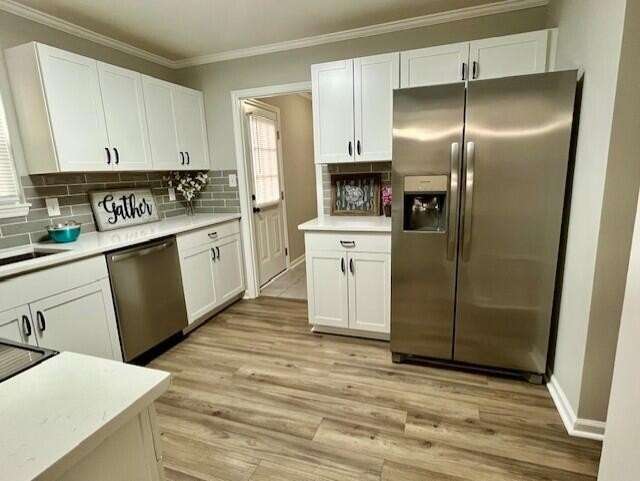 Don't miss out on this completely renovated home. Seller has installed a new HVAC system along with all of the brand new items: New siding, new windows and new roof. Inside; freshly painted walls and trim, new flooring throughout, new lighting, and new hardware and blinds. Enter from the front porch into the living room with a beautiful brick fireplace that leads you through the dining room and into the new kitchen. In the kitchen you'll find all new appliances, new cabinets, sink and quartz counters. The owners bedroom is on the first floor with a full bath and double doors leading to the huge family room where you'll find another equally beautiful brick fireplace. On the second floor are two large bedrooms which share a full bath. Back downstairs in the back of the house is a laundry room which leads to a big patio and large, partially fenced backyard. You wouldn't want to miss the home.