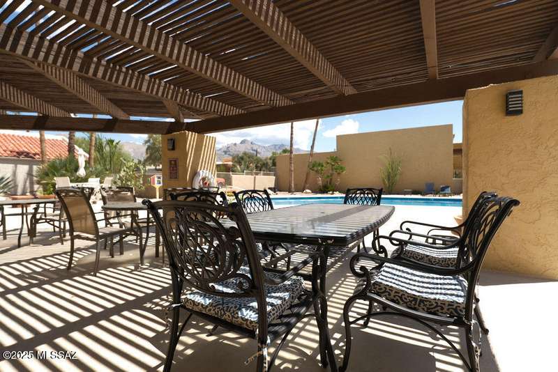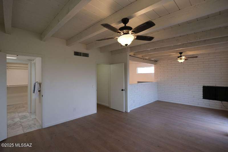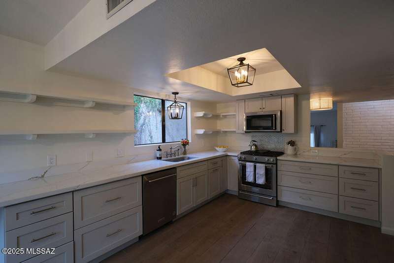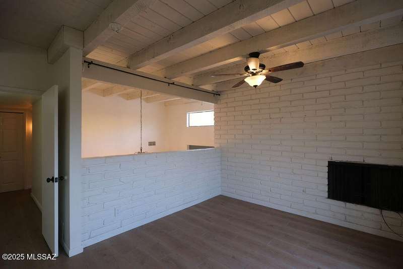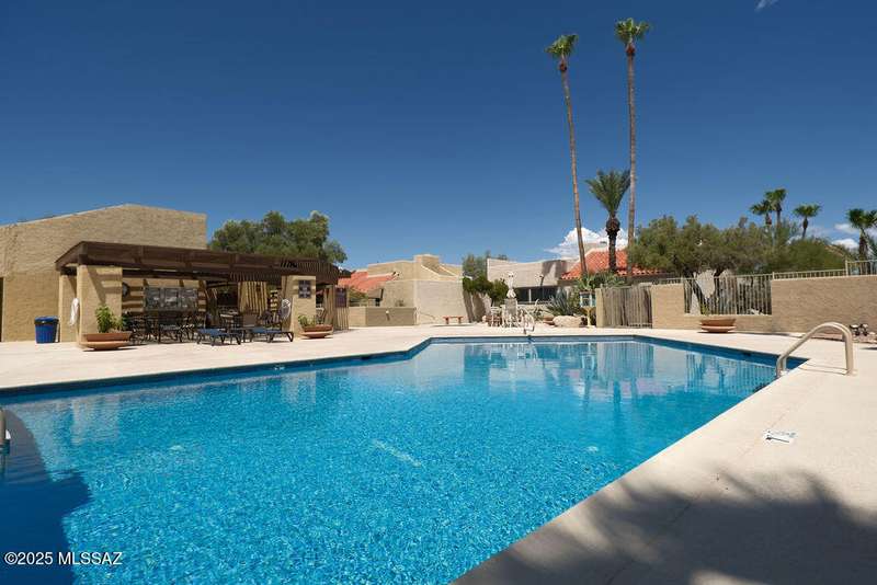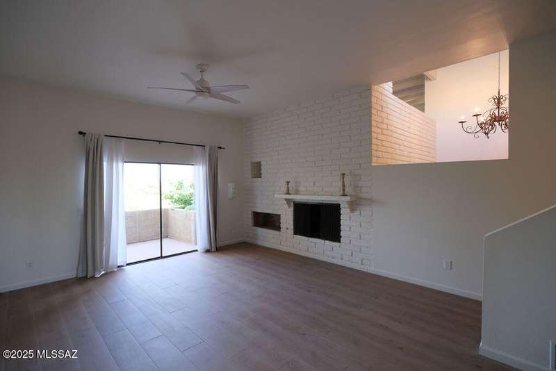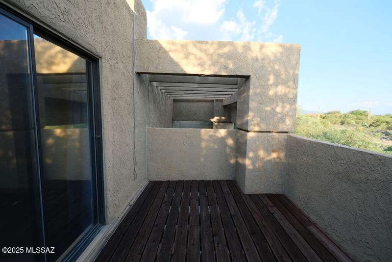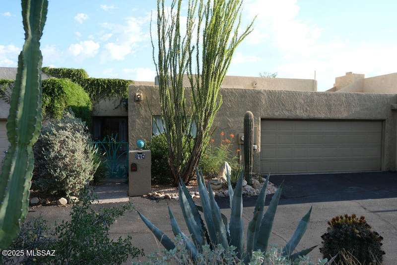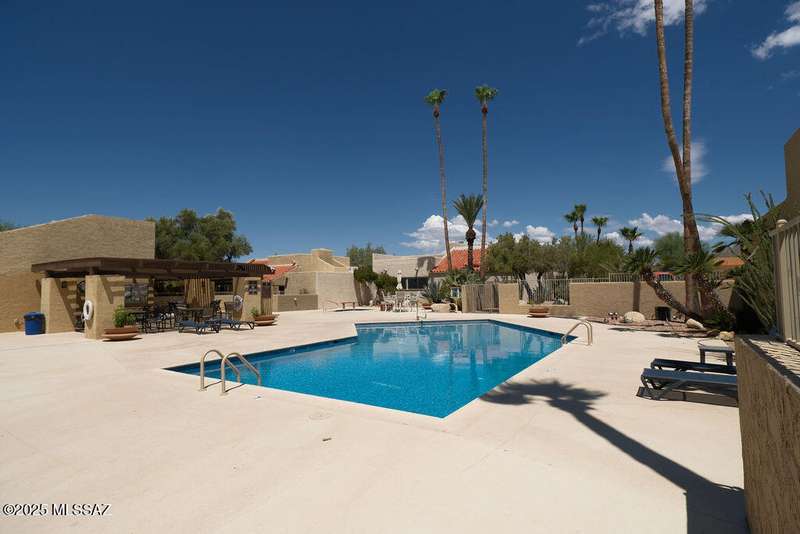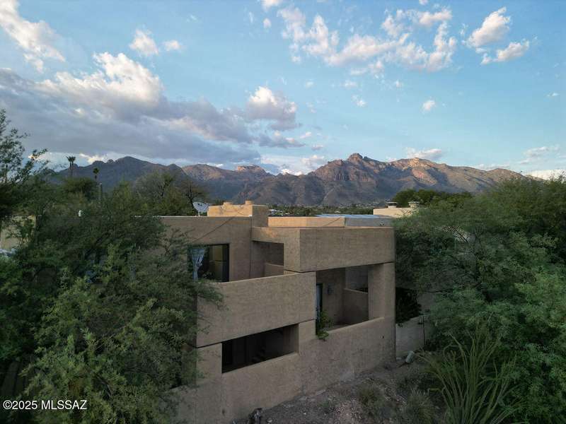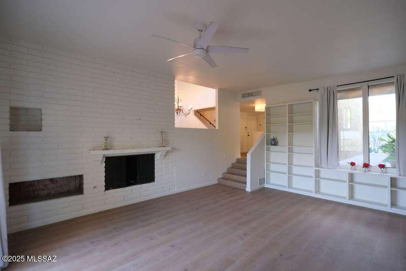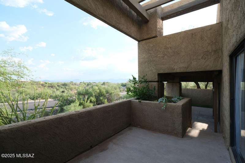 Nestled in one of Tucson's most desirable townhome communities and designed by renowned architect John Campisano, this one-of-a-kind residence has been beautifully updated and is truly move-in ready.Step inside to discover a light-filled, multi-level floor plan designed with character, creativity, and modern finishes. Soaring ceilings, art niches, and thoughtfully placed windows create a sense of openness, while new flooring, fresh paint, updated lighting, cabinetry, countertops, and stainless steel appliances bring a fresh, contemporary feel.The inviting living room features custom built-ins, a gas fireplace, and charming details throughout. At the top level, the stunning penthouse-style primary suite (24' x 14') offers a true retreat with open beamed ceilings, a second fireplace,