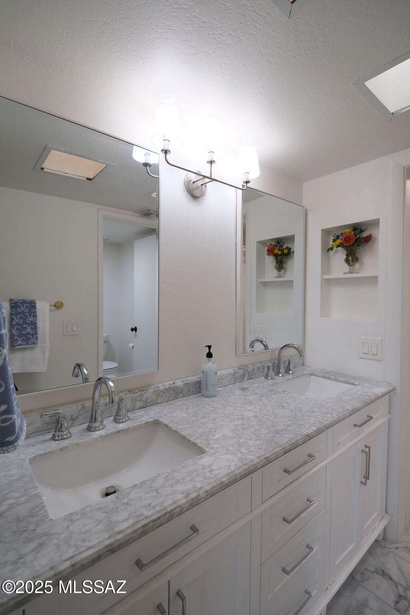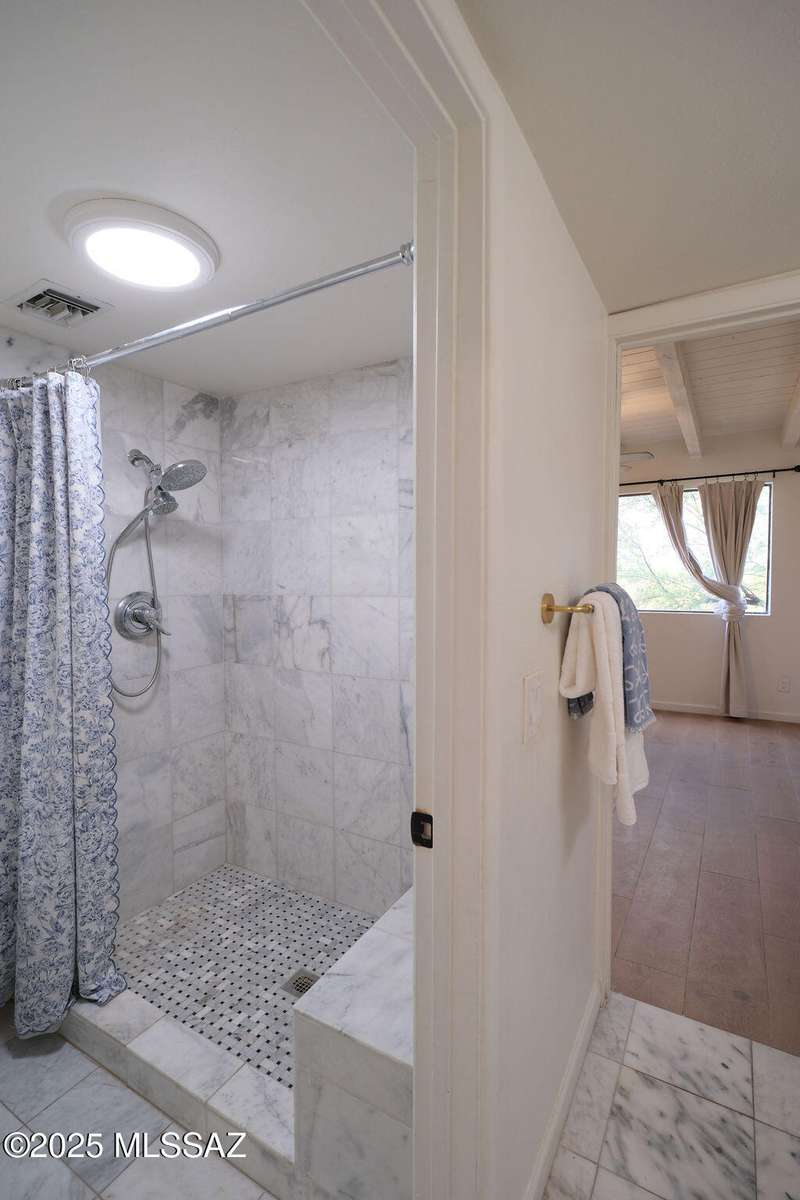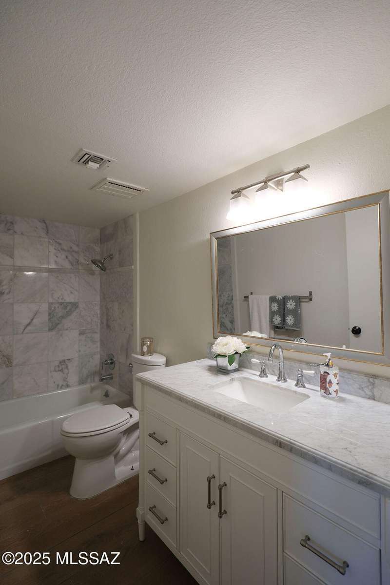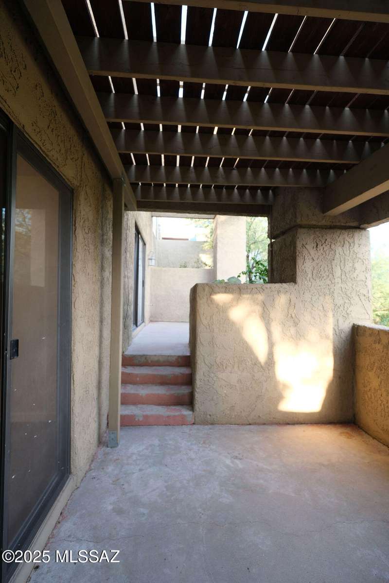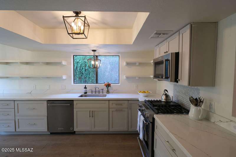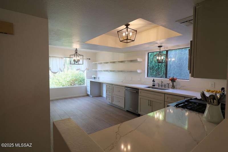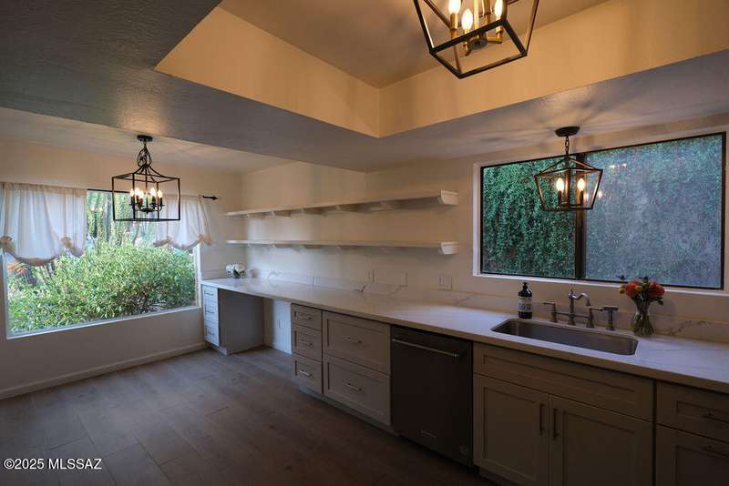 Nestled in one of Tucson's most desirable townhome communities and designed by renowned architect John Campisano, this one-of-a-kind residence has been beautifully updated and is truly move-in ready.Step inside to discover a light-filled, multi-level floor plan designed with character, creativity, and modern finishes. Soaring ceilings, art niches, and thoughtfully placed windows create a sense of openness, while new flooring, fresh paint, updated lighting, cabinetry, countertops, and stainless steel appliances bring a fresh, contemporary feel.The inviting living room features custom built-ins, a gas fireplace, and charming details throughout. At the top level, the stunning penthouse-style primary suite (24' x 14') offers a true retreat with open beamed ceilings, a second fireplace,