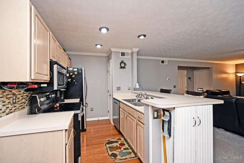 Highly sought after ground floor unit with private wooded view. This unit affords you the luxury of walking your pets directly from your back patio and enjoying nature with a partial view of the nearby water features. This unit also boasts an updated owner's bath, newer furnace and air conditioner, water heater, oven/range, dishwasher, carpet, and dryer. Seven steps down to the unit, or no steps if you use the rear door as an entrance. Tastefully decorated with accent walls and an inviting living room with a gas fireplace. Two pools, dog park, and play area!