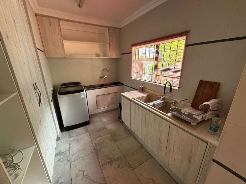 This stunning home is conveniently located within walking distance of a school. Featuring spacious double-volume living areas, this fabulous residence offers the perfect blend of style and comfort. The private main bedroom upstairs boasts a breathtaking en-suite bathroom, while the ultra-modern gourmet kitchen comes equipped with high-end gas appliances. Additional highlights include: 4 beautifully designed bedrooms with laminated flooring 3 stylish bathrooms plus a guest loo Separate study for work or leisure Staff quarters for added convenience Two separate entrances for caravans and extra parking Sparkling swimming pool to enjoy sunny days Fully equipped entertainment area – perfect for hosting family gatherings, complete with a lovely lapa Excellent security features and storage rooms ideal for DIY enthusiasts Situated close to the N17 highway, top schools, and Netcare hospital, this home offers the ultimate in modern living. Don’t miss out – this dream home could be yours!