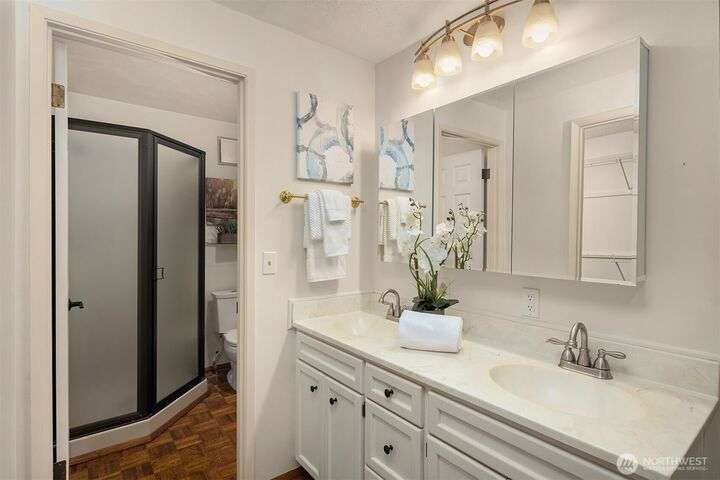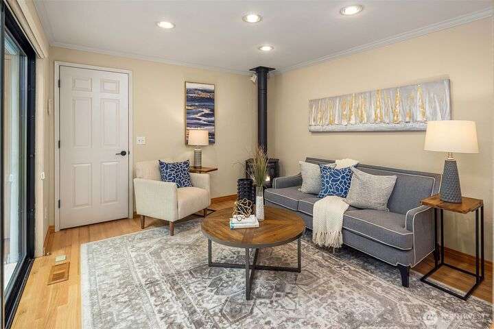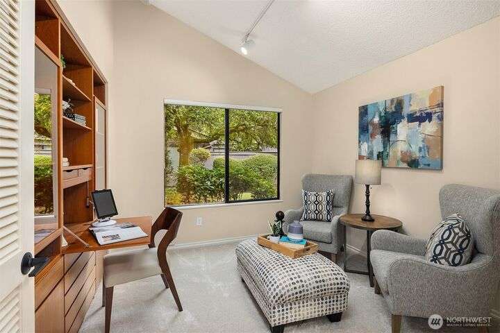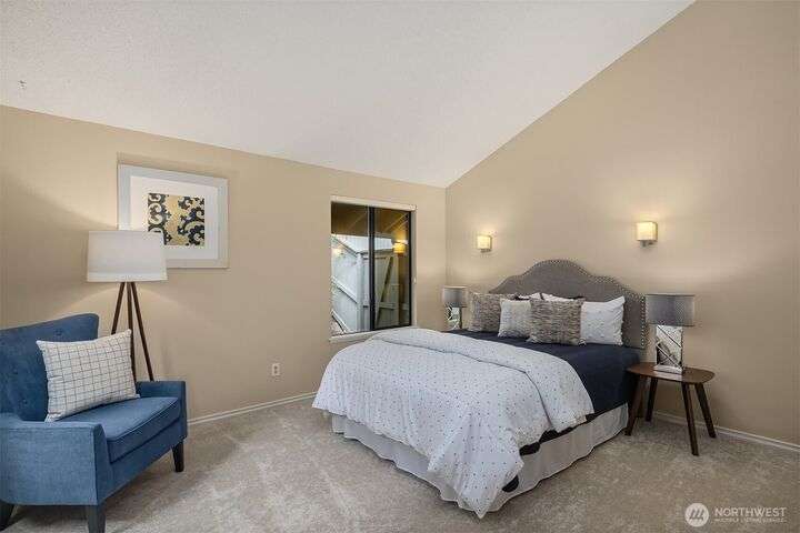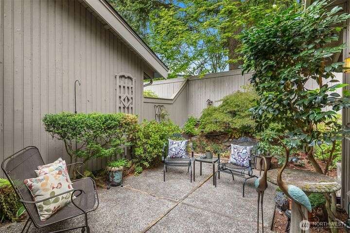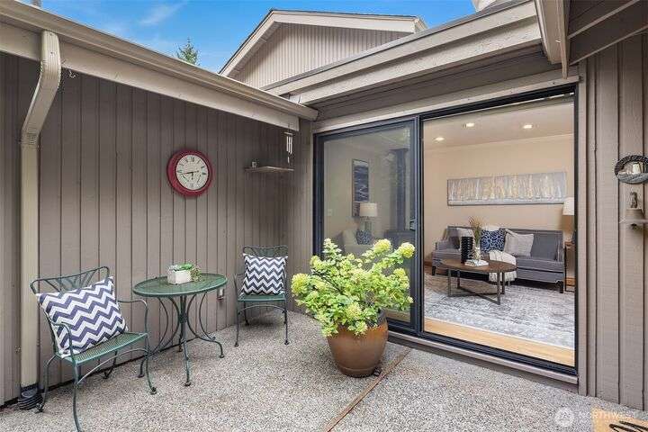 Nestled in nature, this rarely available, single-level end-unit home in sought-after Woodcreek features vaulted ceilings, skylights, and clerestory windows that make it feel light and spacious. Enjoy newly refinished hardwoods, fresh carpet, and a primary suite with walk-in closet, three-quarter bath, and private patio access. Two additional bedrooms offer flexibility for guests or an office. Extras include finished attic storage, central AC, 2-car garage, and two enclosed patios. Woodcreek offers manicured grounds, pool, tennis/pickleball, and clubhouse. Conveniently located close to shopping, schools, trails, and transit. Pre-inspected.