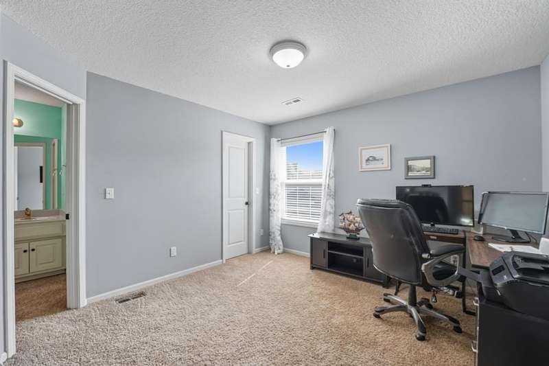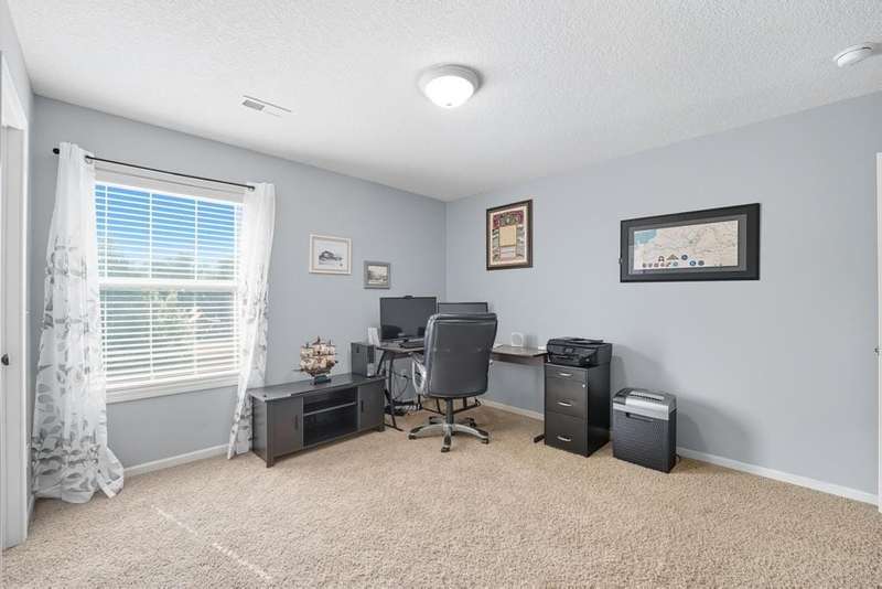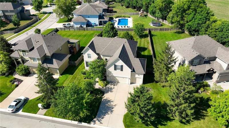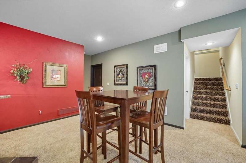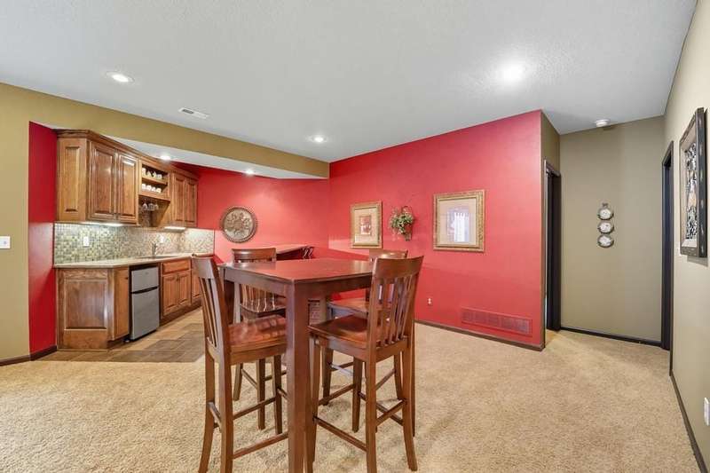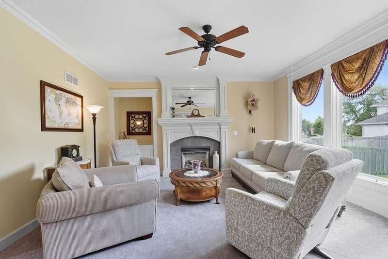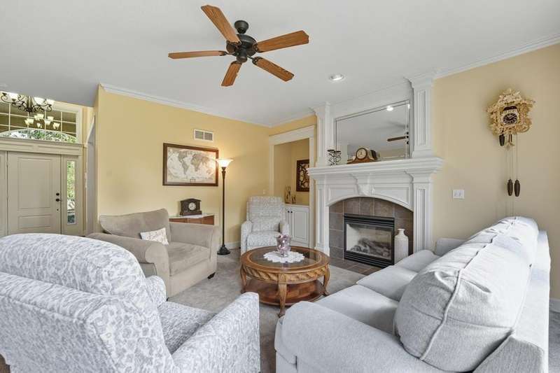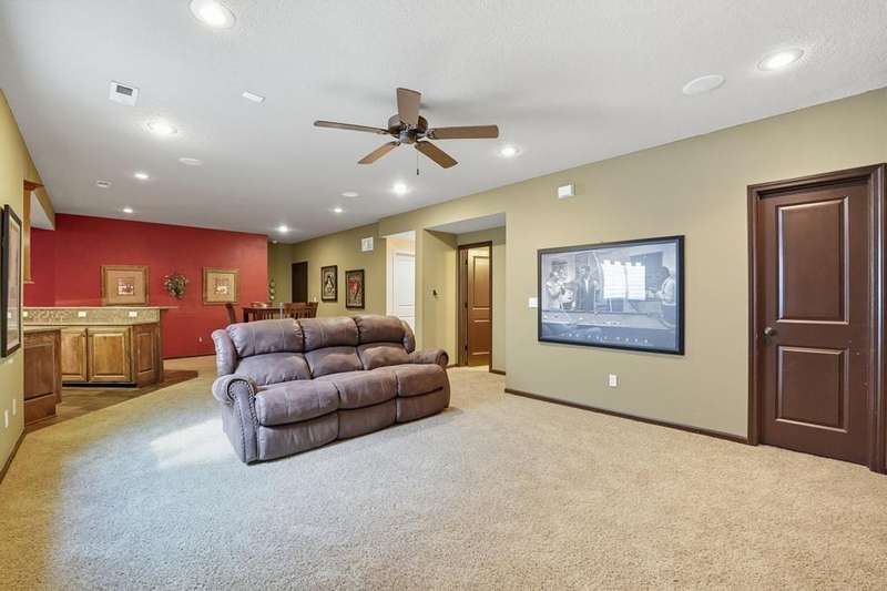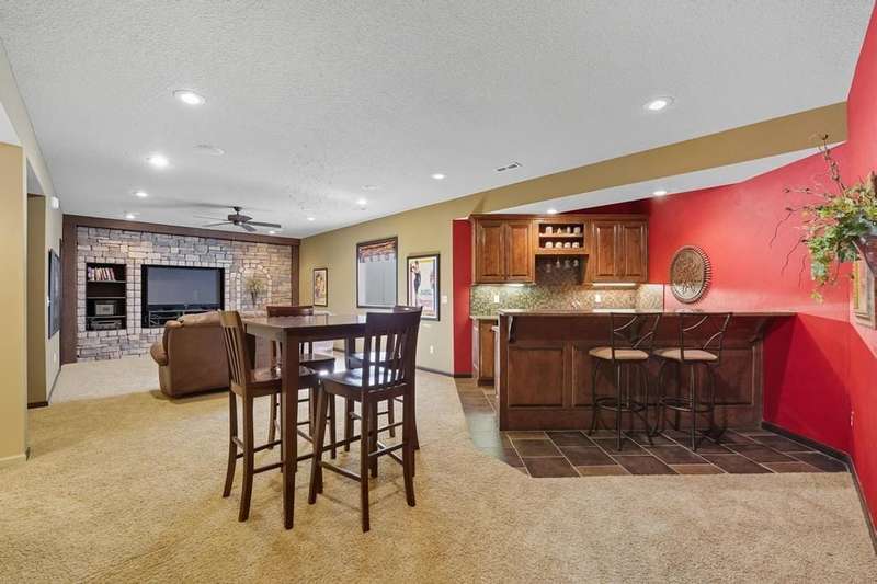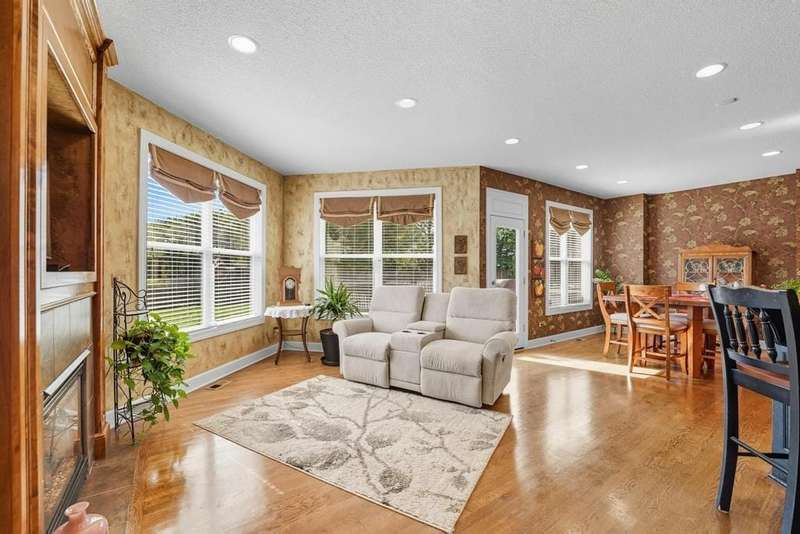 Exceptional home on gorgeous lot with mature trees, established landscape. Lovely front porch leads to 2 story entry with wood floor, through to hearth room, kitchen & breakfast room. Open floor plan offers formal dining off entry, living room with fireplace & wall of windows providing views of lush backyard. The hearth room has 2nd gas fireplace, large windows extending through the breakfast room bringing beautiful natural light. Kitchen has large center islands, granite counters, updated appliances. Full glass door leads to large deck & only couple steps down to backyard. Wide staircase with large window at landing, leads to 2nd level. Primary suite has space for sitting room & private, luxury bath-tiled floor, jetted tub, double vanity w/granite top, large tiled shower & fantastic walk-in closet! Guest suite offers privacy with large bedroom, walk-in closet & private bath. 2 additional bedrooms at opposite end of home are spacious, 1 having large walk-in closet, other offering 2 closets. These bedrooms share a bathroom with double vanity & tub/shower. Large laundry room on the 2nd level has great built ins with large sink, storage cabinets & long folding table. Lower level is finished with very large family room with stone accent wall, egress window, parallel wet bar with granite countertops and raised bar seating, plenty of room for media, game table. 5th bedroom is very spacious with large walk-in closet. 4th full bath has granite topped vanity, large tiled shower & tile floor. 2 large storage spaces are unfinished in the lower level. Garage (29'W x 21'D) has plenty of room for full size truck/SUV, storage/workbench space, tall ceilings provide opportunity for additional storage. Updated HVAC/humidifier & hot water heater. Unfinished storage in LL 11x14. 4th full bath in LL has granite topped vanity, tiled shower.