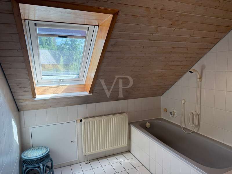 This well-kept detached house was built by the Streif company in 1989 as a prefabricated construction. It offers its future owners a spacious living ambience on approx. 130 m² of living space. With a total of four rooms, the house offers a variety of uses and is suitable for both couples and families. The house is situated on a plot of approx. 1,189 m², which, thanks to its size and the ingrown, natural garden, offers a variety of leisure activities and numerous opportunities for recreation close to nature. The spacious living and dining area forms the heart of the first floor. From the living area, you have direct access to the garden, creating a harmonious connection between indoors and outdoors. Large windows provide a pleasant amount of light and a friendly atmosphere. There is also a fireplace in the living area, which provides cozy warmth and a special ambience on cooler days. The kitchen is functionally designed and offers enough space for all the important appliances and utensils, making cooking evenings with family and friends a breeze. The house has a total of three bedrooms, which can be used flexibly as bedrooms, study rooms or guest rooms. A daylight bathroom and a separate guest WC provide sufficient comfort in everyday life. The furnishings of the house are well-maintained throughout and are of a normal quality. A modern gas heating system was installed in 2012, ensuring an efficient and reliable heat supply. The outdoor area impresses not only with the size of the plot, but also with its natural, ingrown garden. Here you will find space for individual design options: Whether vegetable patch, play area or recreation area - there are virtually no limits to your ideas. The prefabricated garage also offers a sheltered parking space for your vehicle and additional storage space for garden tools and bicycles. The area surrounding this property is characterized by other detached houses - ideal conditions for a pleasant living environment. We would be happy to provide you with further information or arrange a viewing appointment with you so that you can see the advantages of this house for yourself. We look forward to hearing from you.