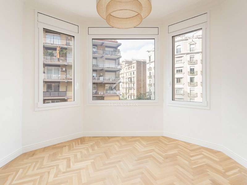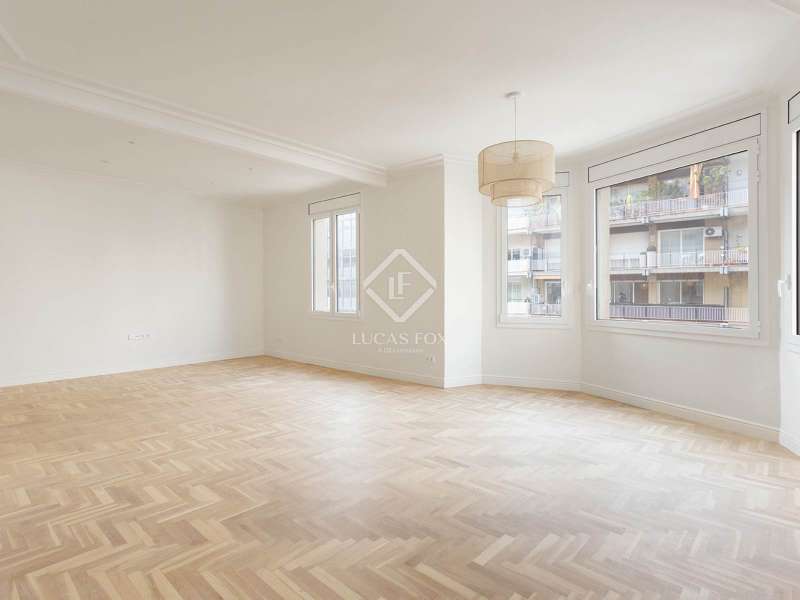 Lucas Fox presents this impressive property in the heart of Sant Gervasi-Galvany, located in a classic 1949 building , on the corner, with concierge service, elevator and storage room. This property has a special charm as it is circular, the entire floor revolves around an courtyard, connecting the day area and the night area indistinctly through the main door or the service door. We enter through a spectacular entrance hall that leads to an anteroom with a fireplace, which can be used as a reading area, a game area, or a work area. Adjacent to this space, we reach the dining area, where large windows allow incredible light to flood in and offer views of the beautiful classic buildings on Balmes Street. The separate living room , measuring almost 40 m², is a true marvel; its generous dimensions allow you to create two spaces in a single space. We head to the bedroom area, where we find two very large double bedrooms, completely exterior to the street. The suite features perfectly compartmentalized, custom-made wardrobes and a bathroom with high-quality materials, including a shower and a Japanese-style bidet for the toilet. The third bedroom is located in the interior part of the property, next to a full bathroom with a shower. A passageway connects the bedrooms to the large kitchen -diner (previously a bedroom), giving great importance to this main space of the property. All the cabinets are by Santos and the appliances are by Miele, and it has a double refrigerator and freezer, dishwasher, and wine cooler. Adjacent to this is a utility area with a Miele washer and dryer, osmosis system, and a full bathroom . Upon entering through the secondary door we find another en- suite bedroom exterior the block island, with a full bathroom with bathtub and built-in wardrobes. The entire property is complemented by custom-made wardrobes, such as those in the two entrances, the en- suite bedrooms, and areas . In this apartment, all the original features have been maintained in good condition, such as the restored and polished herringbone natural wood floors, the interior windows with their antique handles, the high, terracotta ceilings—which convey spaciousness and create large spaces—the arches in the areas , and the fireplace cabinet. The street windows are completely new, with double thermal breaks and motorized blinds. Ducted air conditioning in two stages and individual gas heating are standard. Discover this wonder with Lucas Fox.