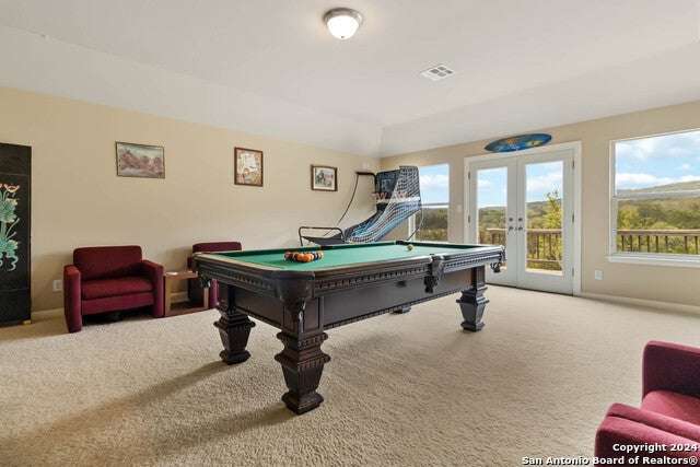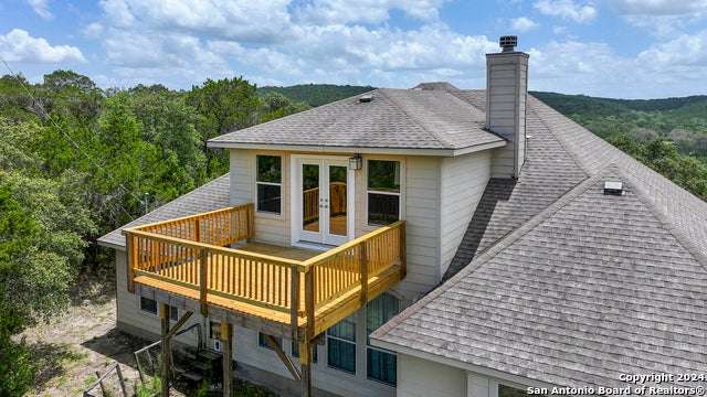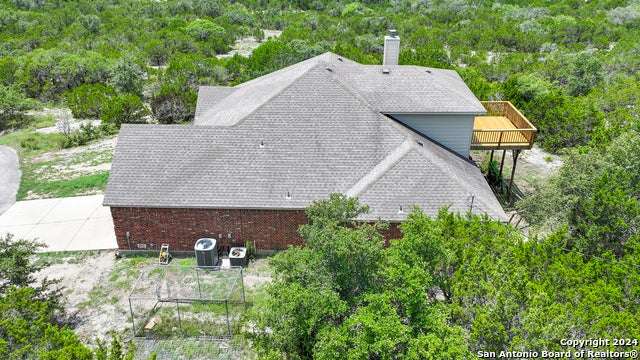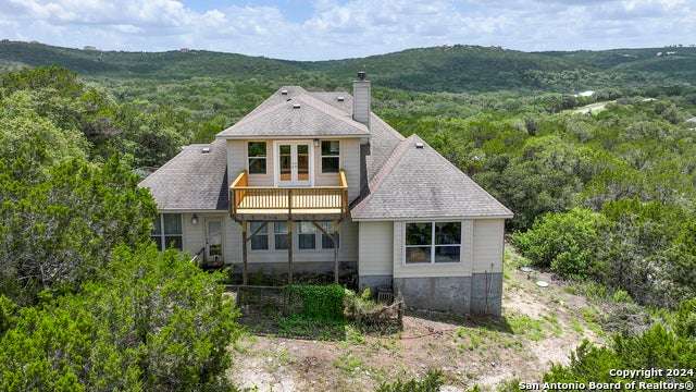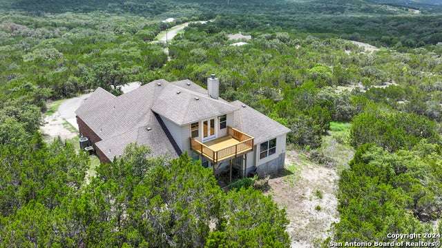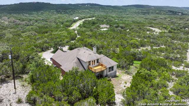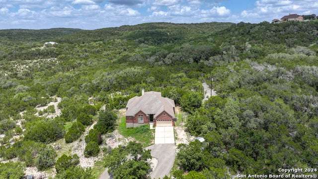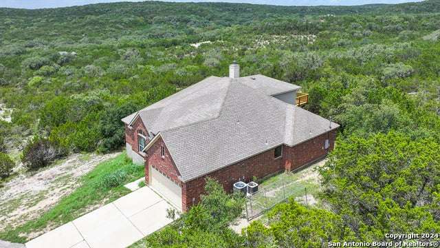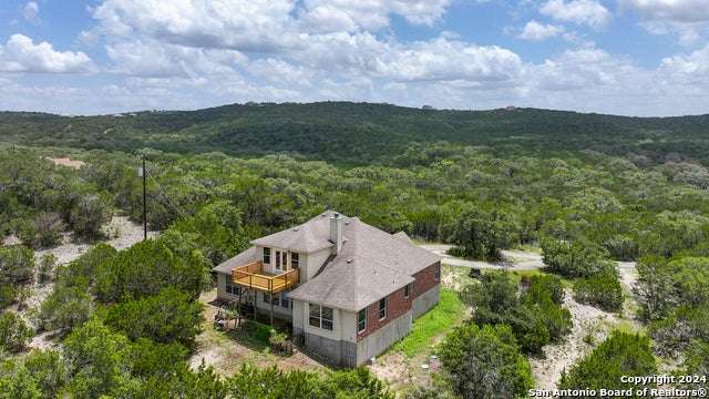 Stunning long range views of the Texas Hill Country from this lovely one story home located in Bear Springs Ranch in Mico, Texas. This smart layout offers 2883 square feet with 3 bedrooms, 2 full bath, private study, game room, and a 2 car garage all sitting on over 5 acres. Enter the long winding driveway to the pinnacle of the hill top to enter this bright and airy open concept home. With views from every room enter the spacious foyer and just to the left is a private study with spectacular views from the windows. To the right is a formal dining room spacious enough to seat 10. The open concept of the living room, breakfast bar, and kitchen is the heart of the home and boasts SS appliances, an overabundance of 42" custom cabinet storage, huge island, and breakfast bar to seat 4. The primary retreat offers privacy and a spa bath with separate shower, double vanities, and soaker tub. Two guest rooom split from the primary with access to a full bath, The only room on the second floor is the expansive game room which provides entry to the deck where the views take your breath away. Call this Bear Springs Ranch private property home today!
