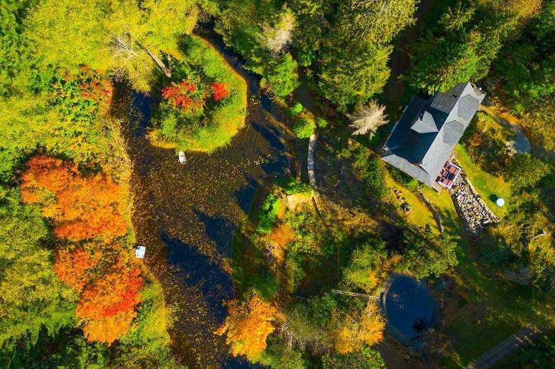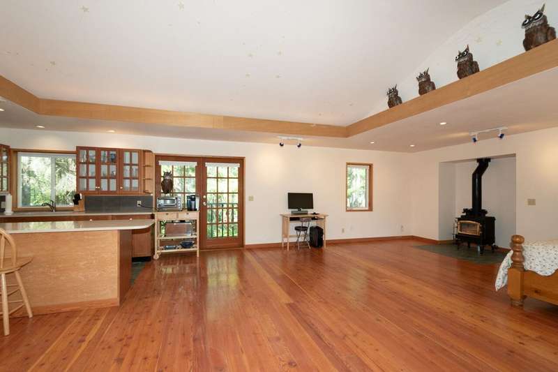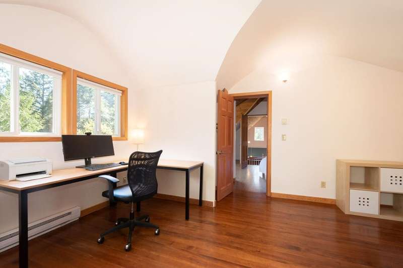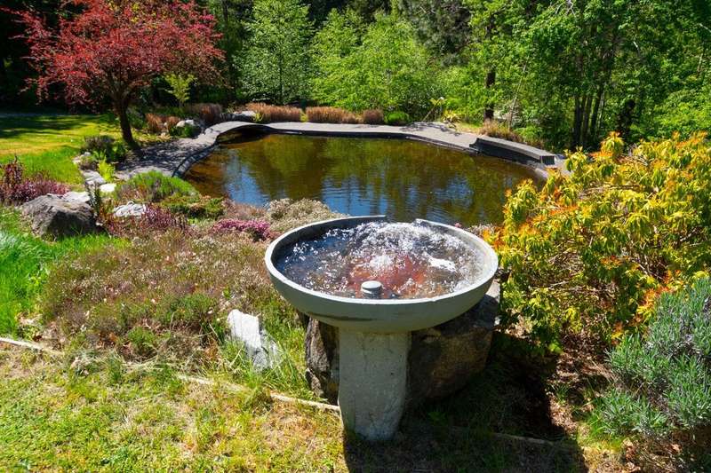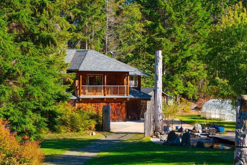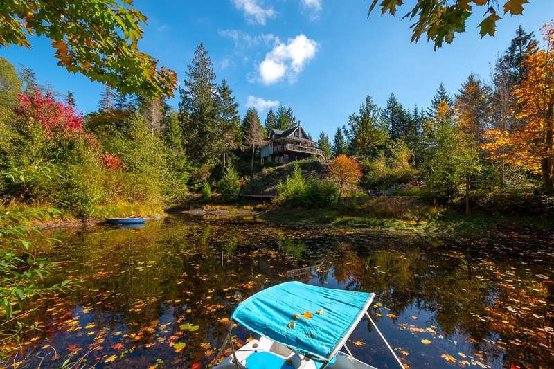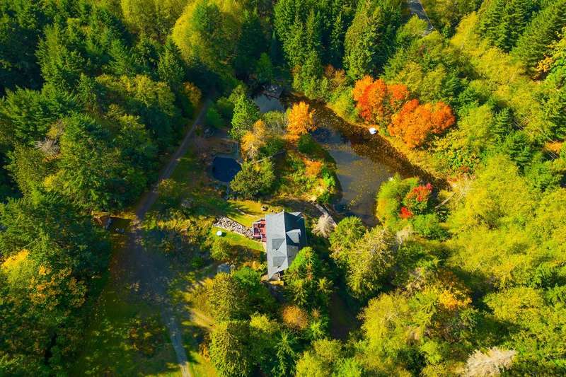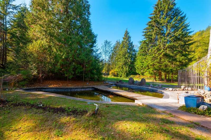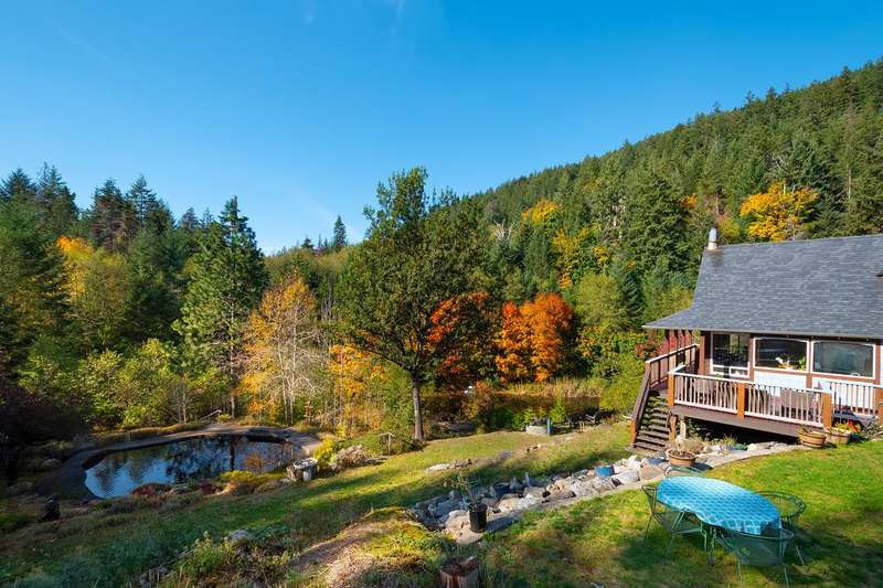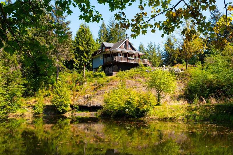 This is one of Bowen's most stunning, one-of-a-kind properties. This 5.8 acre, fully-fenced property at the end of a quiet road has 2 gated entrances and plenty of level and terraced land. Wind-up the front driveway past a huge pond, flowing streams and pool to the main 3-story home with 2 bedrooms, 2 baths, with room to extend. That pond features an inner island and floating dock with pedal and row boats. Just a short walk to the back of the property, a detached 2-story, 2 bath studio sits above a 3-bay garage and workshop. Surrounding the studio is an irrigated garden, greenhouse and plenty of space for a hobby farm. Other features include storage sheds, 3 deep water wells, high-speed internet, local Mt Gardner trail access, and endless potential for all kinds of uses and enjoyment.