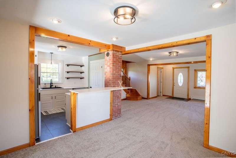 Welcome to this meticulously maintained, clean and bright 3 bed 1.5 bath charmer nestled on a corner lot just blocks from downtown Fulton. Prepare to be impressed by the spacious open layout, complete with brand new wall-to-wall carpet and luxury vinyl tile flooring, new quartz countertops, matching stainless steel appliances, updated electrical, and so much more! Luxuriate in the main living space with an abundance of windows and natural sunlight, or curl up in the privacy and solace of the lower level family room, with gas fireplace insert, ornamental brick, and an eye-catching mantle. Slip out the sliding doors to a generously sized back deck, perfect for entertaining guests and hosting summer barbecues. If you like to tinker, the barn style outbuilding has plenty of workspace to offer, electrical service to work any time of day, and lots of storage space in the rafters. Plenty of room to romp in the lush, green grass of this corner lot, with backyard shed to house those gardening and lawn tools. Full sized basement with additional work bench and storage area just further expands all this wonderful home has to offer. Come fall in love with this move-in ready beauty? schedule your showing today!