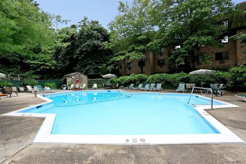 Beautifully renovated ground floor Condo in Scarsdale Woods in the Edgemont school district. Brand new eat-in kitchen, large family room with sliders leading out to balcony. Primary bedroom with garden views, walk-in closet and new en-suite bath. Renovated hall powder room, additional BR/ Office. In unit washer/dryer, outdoor pool, playground, one reserved outdoor parking space, plenty of guest parking, snow removal. Easy walk to Edgemont Middle/High School. Conveniently located to public transportation, shops, schools and Greenburgh Nature Center. A must see!