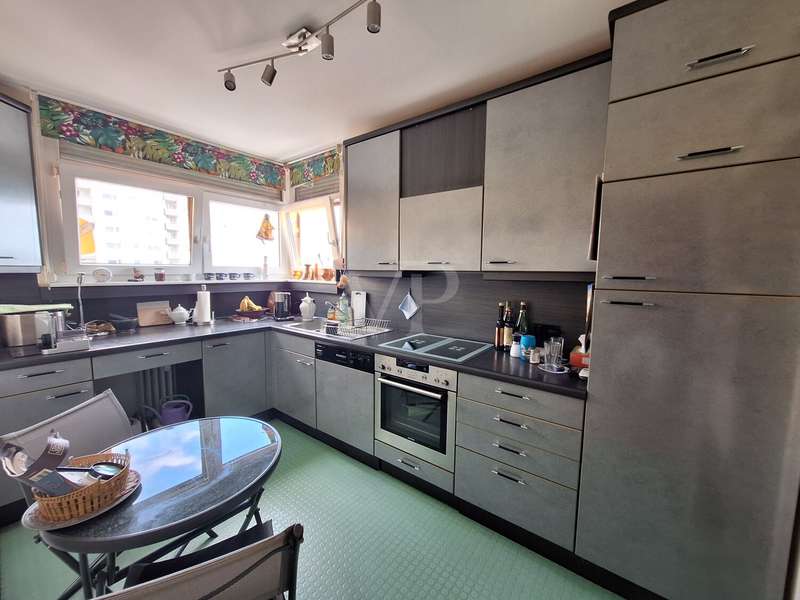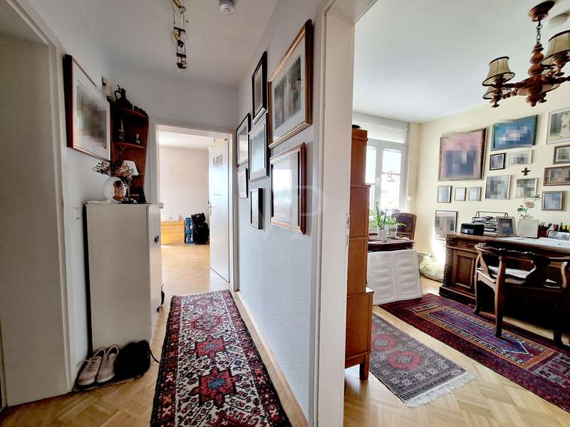 This well-kept and spacious 4.5-room condominium is located on the 6th floor of a multi-party house built in 1972. With a living area of approx. 110 m², it offers well thought-out space for a wide variety of lifestyles - for couples as well as for families or for people who value spacious living. The spacious living area with direct access to the sunny loggia forms the heart of the apartment and invites you to relax and linger. An existing awning provides pleasant shade on sunny days. The dining area is directly adjacent to the hallway and flows seamlessly into the separate kitchen. An adjoining storage room offers practical storage space for everyday use. Three further rooms can be used flexibly as bedrooms, children's rooms or studies. The interior bath/shower room, a separate WC and a second storage room provide additional convenience. The clear room layout with two hallway areas creates structure and a pleasant feeling of living. The apartment boasts solid, well-maintained fixtures and fittings that meet all the requirements of modern living. The windows were successively modernized between 2005 and 2020. Heating is provided by a central heating system, which ensures even warmth in all rooms. The roof of the building was already extensively renovated in 2014 - major measures are therefore not expected in this area in the foreseeable future. A cellar compartment offers additional storage space, and a communal bicycle storage room is also available. There are plenty of parking spaces for your car in the immediate vicinity. The apartment is in a central, well-connected location. Shopping facilities, doctors, public transport, schools and kindergartens are all in the immediate vicinity - making it easy to run everyday errands and enjoy leisure activities. For further information or to arrange a viewing appointment, please do not hesitate to contact us. Take the opportunity to see the benefits of this apartment for yourself.
