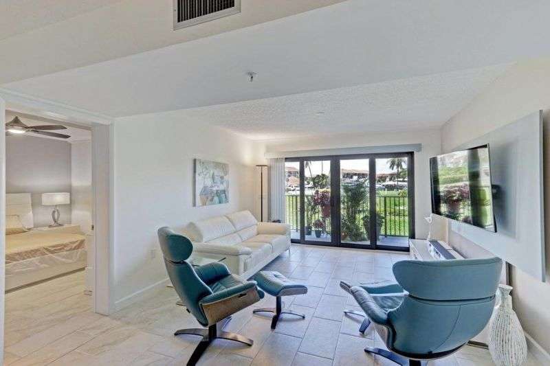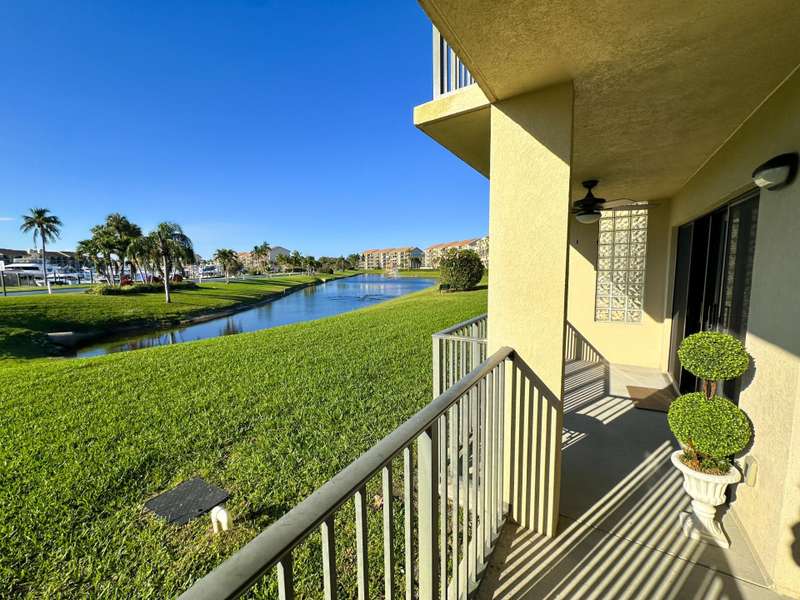 Are you looking for a ground floor condo with a water view that is updated to the max? Completely move-in ready with impact windows and doors, LED lighting, porcelain tile flooring through out, stainless steel appliances, and quartzite counters. 2/2 with separate laundry room with bonus area that can be used as for storage, an office, or small gym. ROOF 2022. Marina at the Bluffs offers beautiful landscaping, sidewalks, 4 salt water pools, two tennis courts, and one bocce ball court. Extremely close to the beach, shopping and dining. The building recently passed the 40 year certification. Built by Berg & DiVosta Development Company, best known for its energy-efficient building practices. No other ground floor units on the market that our completely updated. Dont wait!