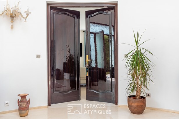 Hidden behind imposing wooden doors, worthy of an oriental palace, the living room is revealed with elegance.