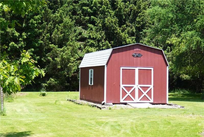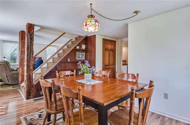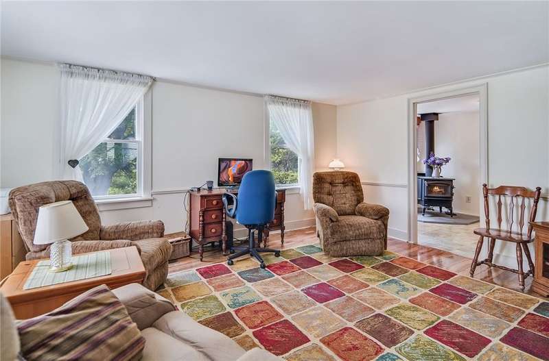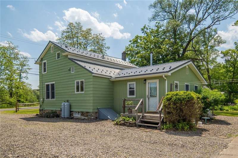 Special 3 bed 2 bath 3.89 acre property on Enfield Creek. This sweet home has been in the same family for 5 decades. House is a comfortable 1600sf with main level primary, nice-sized rooms, and the warmth of a wood stove in breakfast room off kitchen. There are ample closets for a house of this era and a deep pantry off kitchen. Newer metal roof and excellent interior and exterior maintenance. The bigger bedroom upstairs has the nicest view and the wonderful sounds of the creek to lull you to sleep. Outside the creek meanders the edge of the property. Cool off on a hot day, relax with a good book creekside, or even fish when conditions are right. Wander back to your own established pine grove where it feels like you've got a slice of Maine right on your property. Spend nights camping in your one-room cabin, sleeping by the woodstove. In the mood for something different? Hike your own trails and appreciate the diversity of your land. Large garage has plenty of room for your projects. Red shed can accommodate all of your yard equipment. This is a place for staycations, enjoyment, and making memories. Sellers will contribute to closing costs.