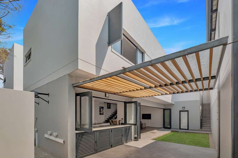 This perfectly designed home is the ultimate blend of indoor and outdoor living. The entire home opens onto the garden and entertainment area providing the ideal place to create indelible memories with family and friends. The kitchen, a culinary enthusiast’s dream, features stacking windows onto the patio for ease of entertaining making serving drinks and food a breeze whilst braaiing and having fun. Even the prep bowl can be accessed from outside demonstrating the perfect design of this spectacular home. You will love the high gloss cabinetry, eye level ovens and a hob in the center island, there is also ample space for a huge fridge. This kitchen, with its separate scullery, is perfect and will form the heart of your home. A guest loo downstairs ensures your upstairs haven remains private. When ready to retire, climb the stairs to your private three-bedroom sanctuary with all bedrooms spacious and ensuite. A pyjama lounge provides the perfect place to relax and refresh on lazy days. Convenience is there with a double automated garage and additional undercover parking. The ensuite maid’s room can even be used as a private guest suite. The area provides the best in terms of security, safety and convenience. Sitting behind monitored booms and in a CAP patrolled area with CCTV ensuring peace of mind. This peaceful suburb has quick and easy access to Chabad of Strathavon, the highways, restaurants, excellent schools, entertainment and medical facilities. Don’t delay, every detail in this home speaks of quality and style from the beautiful wood-finished floors to the luxury Caesarstone counters, high gloss cabinetry and feature balustrade. This home is way beyond ordinary. Call Kevin today to set up your private viewing.
