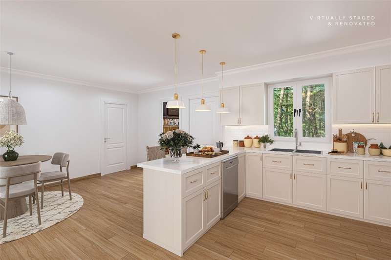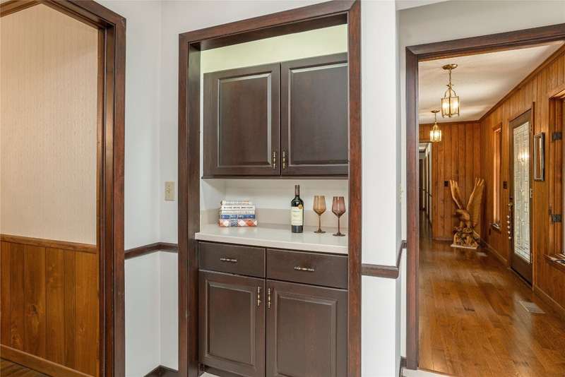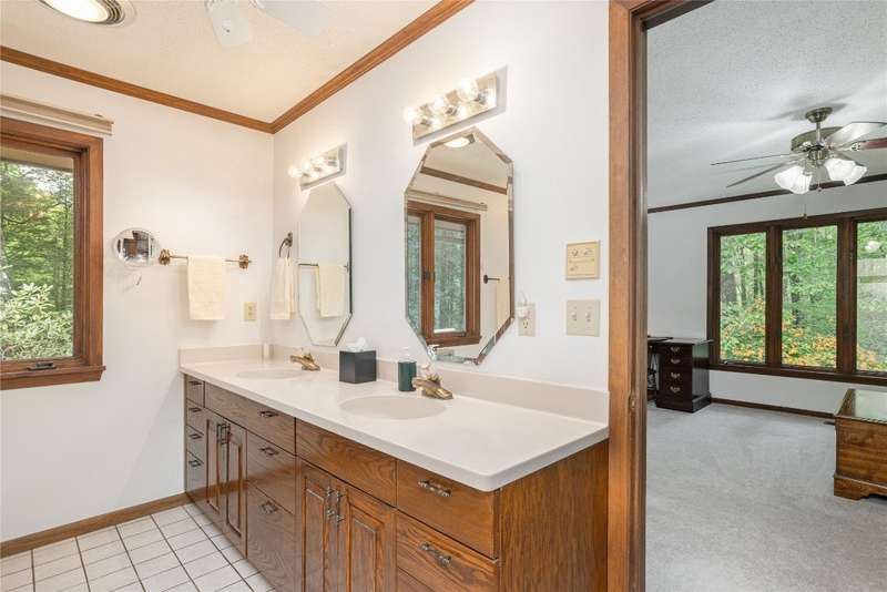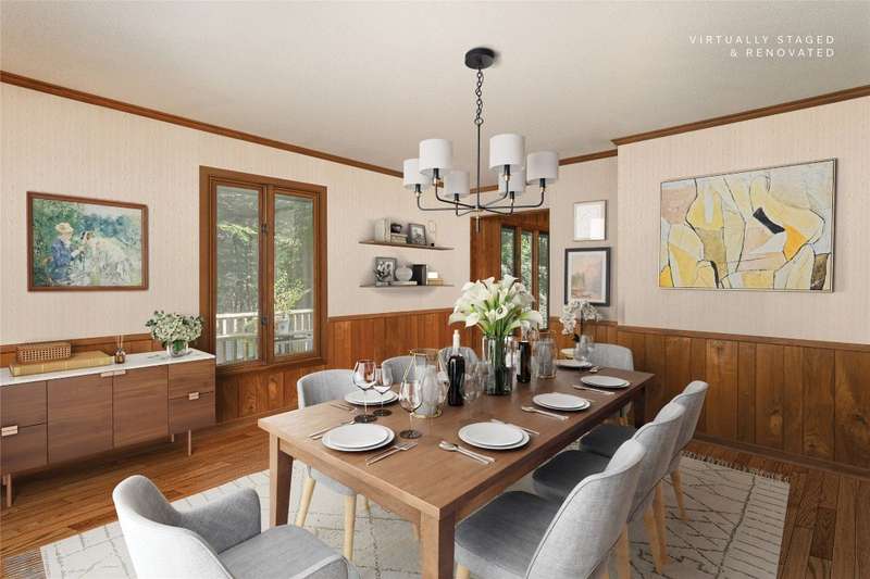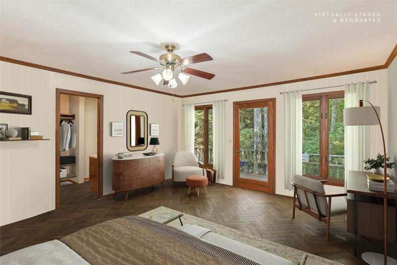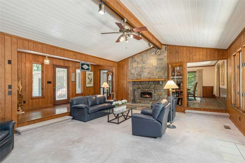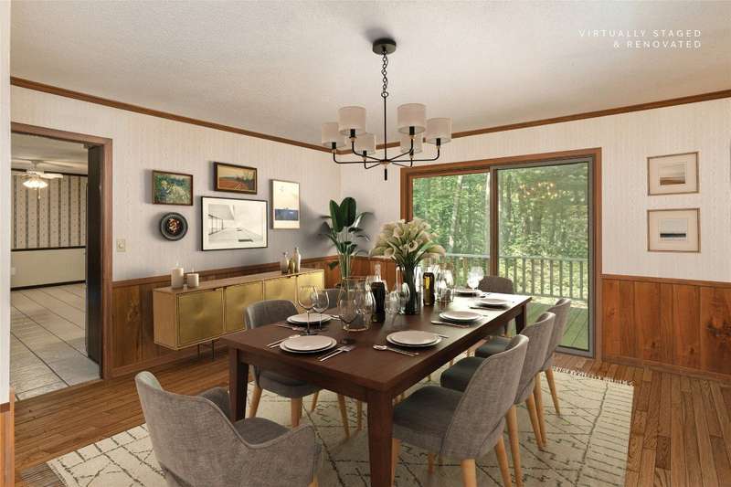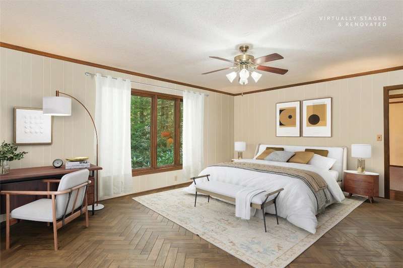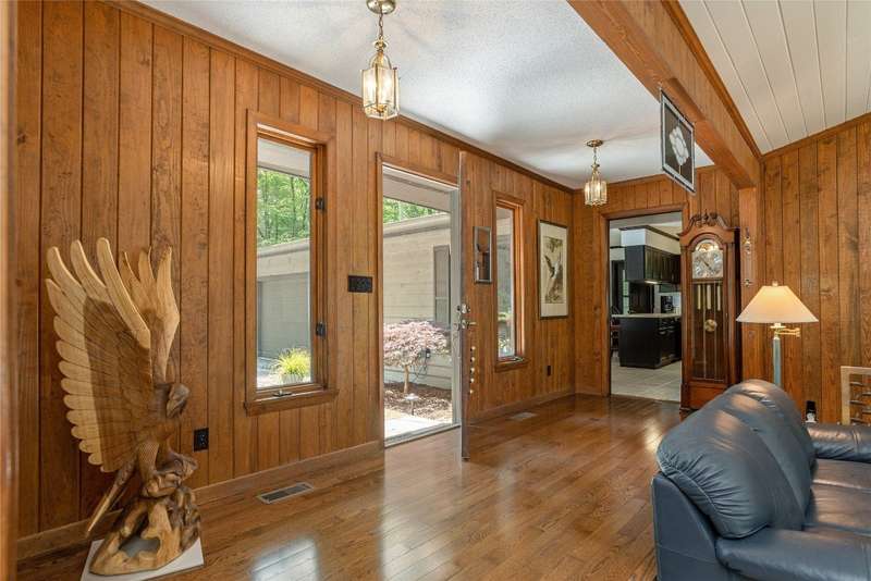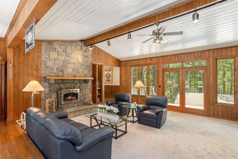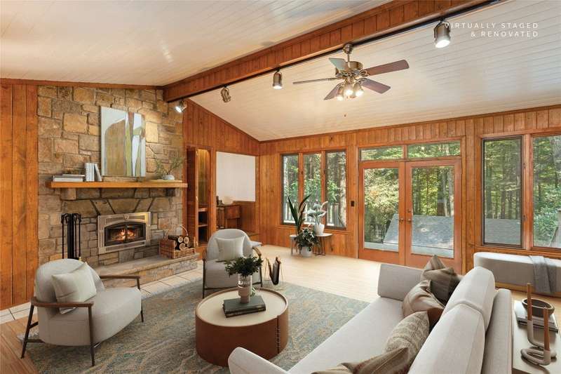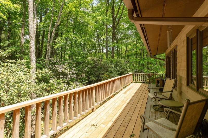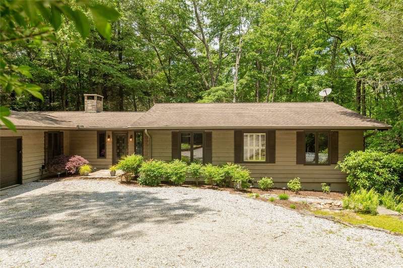 Discover the charm of mountain living in the peaceful Stillmont neighborhood, perfectly positioned along the coveted Highlands-Cashiers corridor. This captivating home sits on 2.9 wooded acres that border a conservation easement, providing both privacy and the natural beauty of the Plateau. A circular driveway and a charming water feature lead the way to this meticulously maintained mountain retreat, enhanced in 2025 with fresh interior painting that brightens and modernizes the space. Inside, the home retains its midcentury character while offering endless potential to blend classic appeal with contemporary updates. The main level is designed for easy living, featuring a spacious primary suite with a walk-in closet, a guest bedroom, an office, and generous storage. The cozy living area - anchored by a rustic stone fireplace - is an inviting space to unwind with a book or gather with family and friends. The kitchen and adjoining dining area are perfect for both casual meals and festive gatherings. Step outside to enjoy the expansive deck, ideal for soaking in cool mountain breezes, or gather in the screened gazebo for unforgettable evenings of alfresco dining. Modern comforts abound, as the fiber optic internet, generator, encapsulated crawl space, and 2024 dehumidifier and sump pumps ensure year-round comfort and peace of mind. Whether it's the vibrant fall foliage, snowy winter landscapes, or lush spring blooms, this home offers a front-row seat to the natural beauty of The Plateau. Embrace the timeless appeal of mountain living in Stillmont, where every detail reflects care and the true spirit of a cozy, alluring mountain getaway - just minutes from Cashiers and Highlands. Virtually staged and renovated photos are included to showcase the potential of the property.