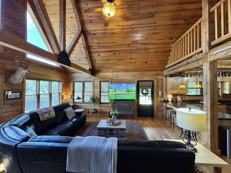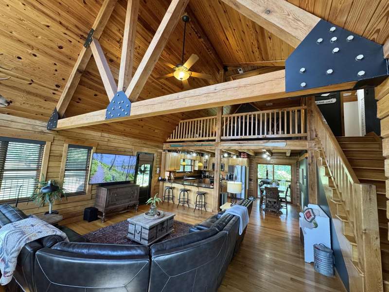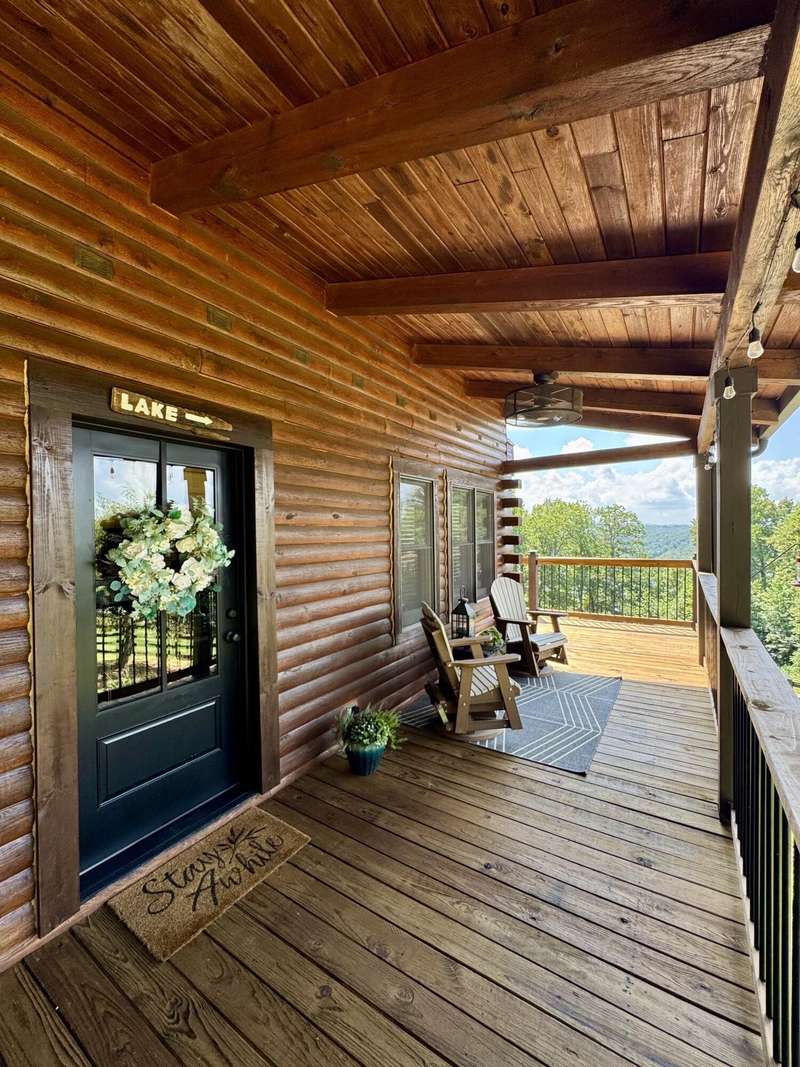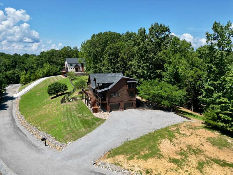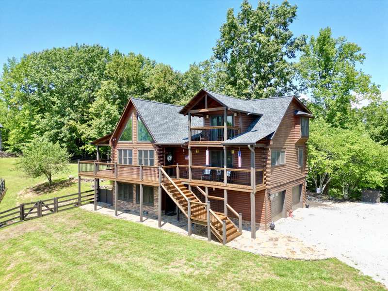 Overlooking Dale Hollow Lake is this breathtaking oak lodge by Gastineau Log Homes sitting on over 4 acres! As of late October 2025, the home has just been professionally cleaned, stained, and sealed for years of maintenance free enjoyment! Features an open concept living/kitchen/dining area with vaulted ceilings. 4 Bedrooms (easily 5 w/ loft area) and 3.5 baths make this ideal for hosting friends and family! All new stainless-steel appliances, new roof, finished basement, and oversized 2-car garage. All beds pictured are kings! The laundry is just off of the master suite which has a jetted tub, walk-in shower, and large walk-in closet. Ample space to entertain with the wrap around porch overlooking the lake, the fully fenced side yard with flagstone patio and firepit, as well as the firepit and sitting area in the woods below the house! Wisdom Dock Marina is only about 5 minutes away, and there is a community walking trail just below the home that goes down to the water's edge. The 4+ acres are made up of 3 surveyed tracts which present an awesome opportunity for family or friends to build their own place on either side of the lodge! This is a ''must see'' property with endless potential. Call today for a private tour! *Ask for list of new home updates