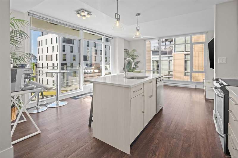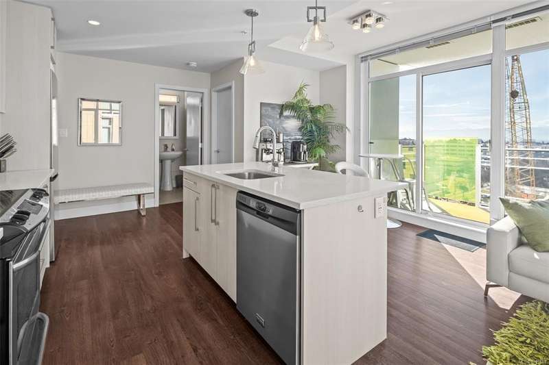 Welcome to The Mondrian, one of Victoria’s most sought-after steel and concrete buildings in the heart of downtown. This sun-drenched, south facing 2 Bedroom, 2 Bathroom Sub Penthouse corner suite on the 9th floor offers open-concept living, highlighted by a spacious kitchen with a large island, quartz counters, European-inspired cabinetry, and stainless steel appliances. The desirable floor plan features separated bedrooms, including a primary suite with a walk-through closet and 4pc ensuite. Step onto your private balcony to enjoy an evening BBQ while taking in fantastic city, mountain, and ocean views. The Mondrian is a well-managed building offering secure underground parking, separate storage, bike storage, and an on-site caretaker. Just steps from coffee shops, restaurants, gyms, Cook St. Village, Dallas Rd. Waterfront, and all that downtown Victoria has to offer - this is urban living at its finest! NOW PRICED $80,000 BELOW THE MOST RECENT COMPARABLE SALE IN THE COMPLEX!