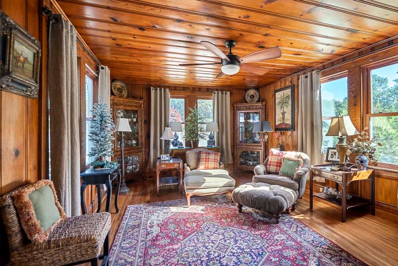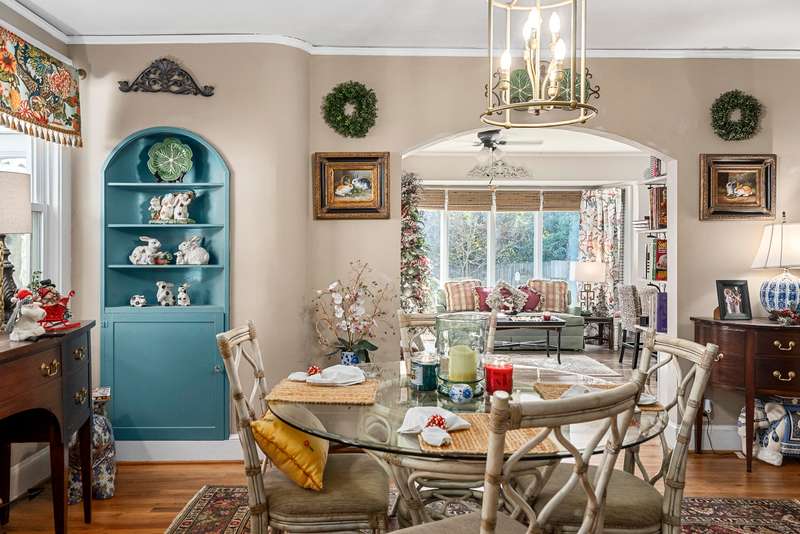 Delightful and Inviting 3 Bedroom, 2 Bath Old Aiken Cottage is found tucked privately amidst a lush landscape in convenient Kalmia Forest, just minutes to downtown Aiken, USC-Aiken, hospitals & shopping. Inside, timeless charm meets thoughtful updates. Enjoy authentic hardwood floors, the comfort of the character-rich den wrapped in knotty pine paneling with custom built-ins, and the warmth of the kitchen and keeping room anchored by a gas fireplace. The spacious formal dining room features classic corner built-ins and overlooks a delightful courtyard-style patio—ideal for outdoor dining and entertaining. The private bedroom wing includes a large vestibule off which you will find a serene primary ensuite, two additional guest bedrooms sharing a hall bath, and a flexible study/bonus area with extra storage accessible from one of the guest rooms. Recent Improvements include a 2018 roof; 2021 installed exterior siding, window shutters, new windows for excellent efficiency; gutters, gas logs as part of a fireplace conversion from wood to gas; natural gas cooktop; 2022 tankless water heater, 1 yr new wall oven, updated kitchen hardware & more! Nestled beneath dogwoods, mature hardwoods, and crepe myrtles, this lovingly updated home offers rare character, natural beauty and a convenient locale. Don't miss the chance to be the next owner of this charming Aiken cottage just minutes from the heart of town!