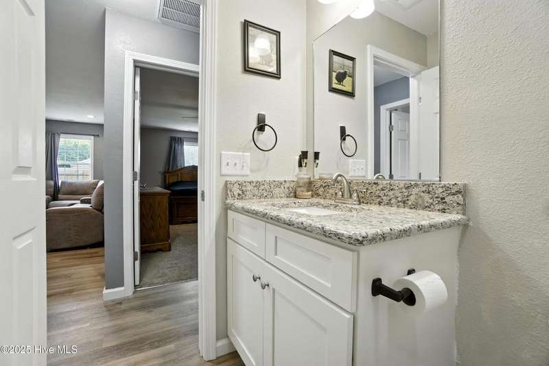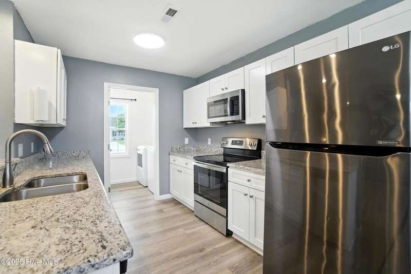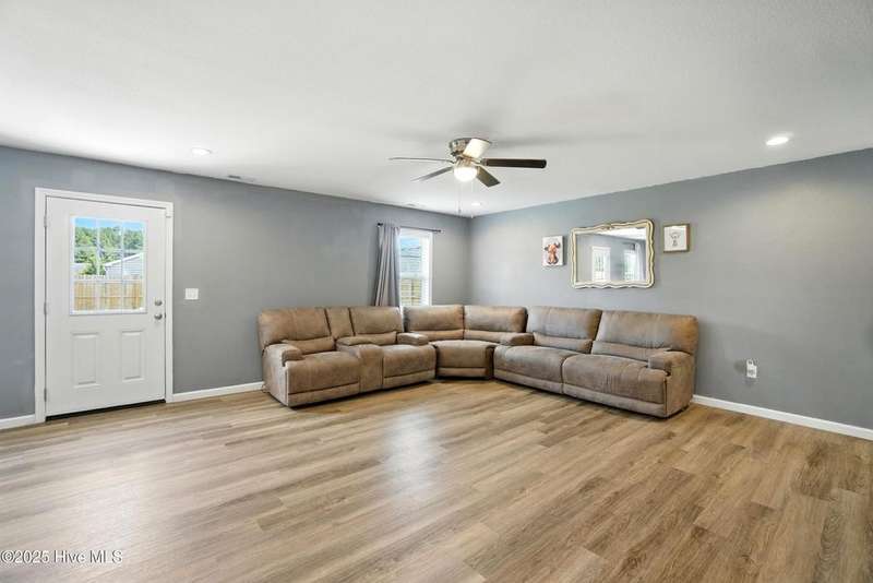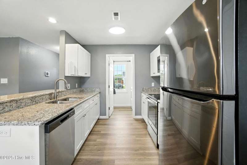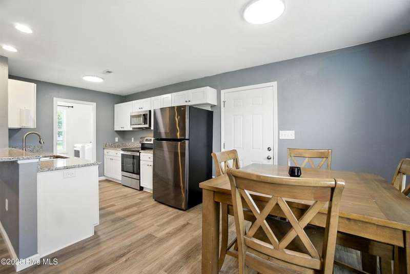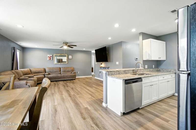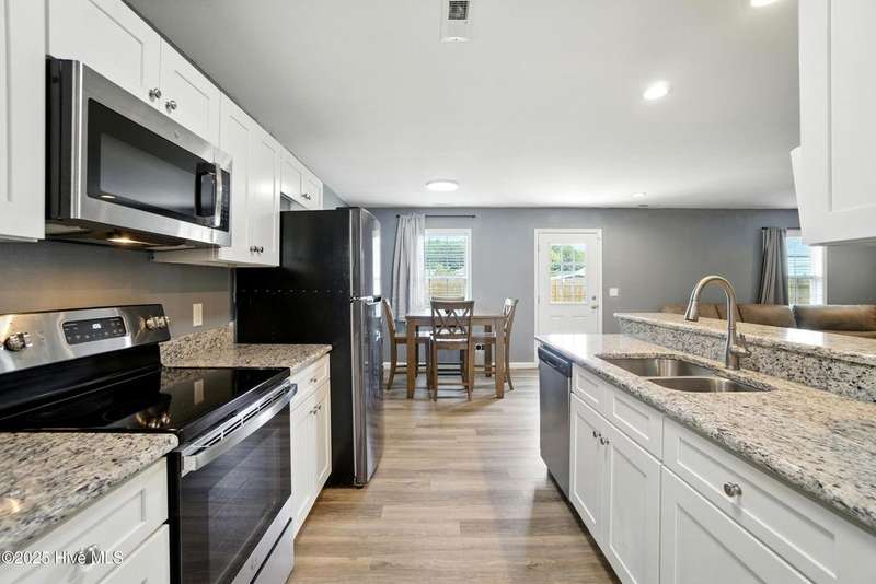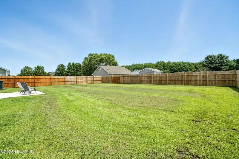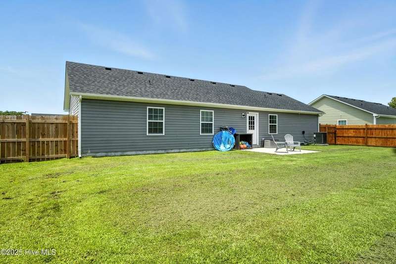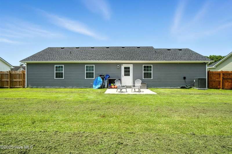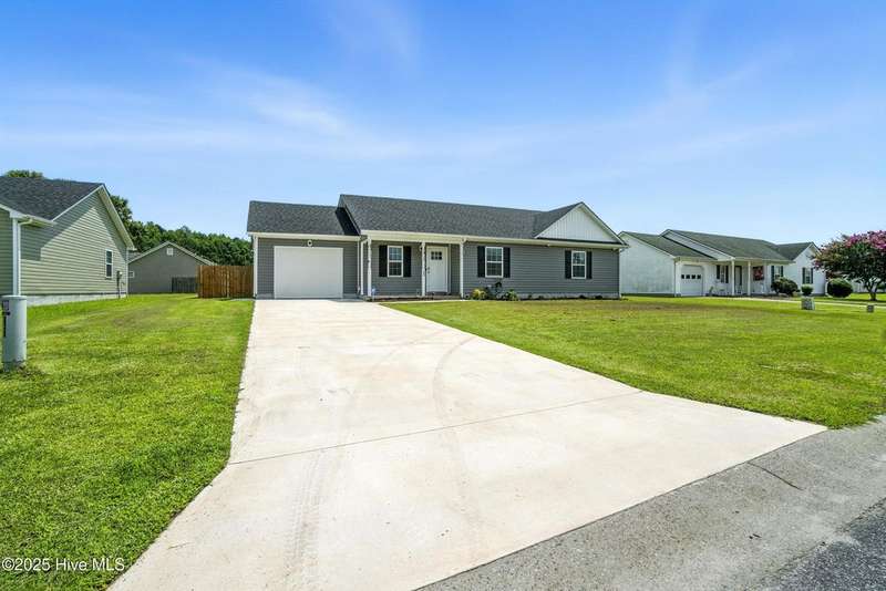 Discover 302 Kristin Street! A stylish 3 bedroom, 2 bathroom modern ranch home with thoughtful design throughout. Built just a year ago, this beautifully maintained residence features an open concept layout that effortlessly connects the living room to the kitchen. Outfitted with sleek granite countertops, the eat in kitchen has ample workspace, with a walk-in pantry tucked away in the laundry room for added functionality.Durable LVP flooring flows through the main living areas, complemented by soft carpet in all bedrooms. The spacious primary suite includes its own private bathroom for comfort and convenience. Step outside to enjoy the expansive, fully fenced backyard, ideal for pets, play, or future outdoor plans. Finished in modern blue-gray vinyl siding, this home combines style, functionality, and the low-maintenance appeal of like-new construction.