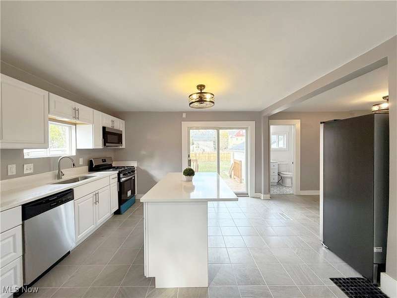 1859 E 33rd St, Lorain, OH 44055 Completely remodeled from top to bottom, this 4-bedroom, 3-full-bath home is truly move-in ready! Step inside to an open floor plan that blends modern design with comfort and functionality. The brand-new kitchen is a showstopper, featuring granite countertops, a spacious island, new cabinetry, and tiled flooring that flows seamlessly into the dining area and main-level full bath. The living room offers all-new vinyl plank flooring and recessed lighting, creating a bright and inviting space for relaxing or entertaining. Upstairs, you'll find four bedrooms with matching new flooring and a beautifully remodeled full bath. The lower-level features yet another full bath with a custom-tiled walk-in shower-perfect for guests or additional living flexibility. Every major system and surface has been updated, including a new roof, gutters, windows, furnace, central air, electrical panel, hot water tank, appliances, flooring, bathrooms, and fresh paint inside and out. Enjoy the brand-new front and back porches, refreshed landscaping, and peace of mind knowing this home is fully modernized and built to impress. Conveniently located near parks, schools, restaurants, shopping, and highways, this home checks every box. Don't miss your chance to own a stunning, fully renovated property that's ready for its next chapter!