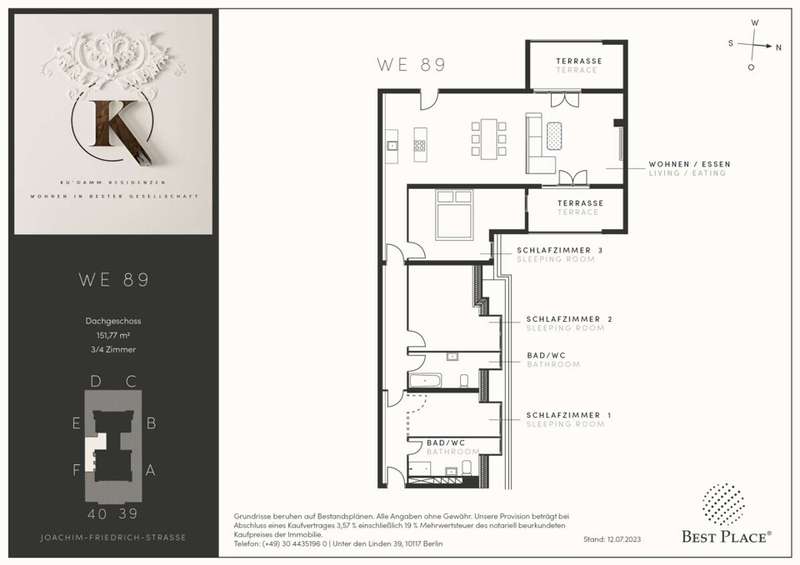 Penthouse in first occupancy in a premium location: In our Ku’damm Residences project, spacious penthouses with unobstructed views, spacious floor plans and fantastic roof terraces were built on a historic old building from the Wilhelminian era. Each penthouse has at least three rooms, has a main entrance and a second entrance/exit as well as a light-flooded ambience. The penthouse unit offered here is the WE89 with approximately 151.77 square meters of living space and two roof terraces. Further details can be found under the equipment section. The floor plan also gives you a good impression of this special penthouse. We look forward to your inquiry and the first viewing together!