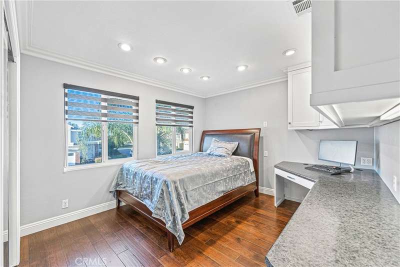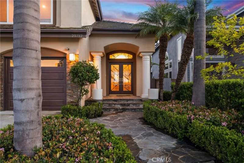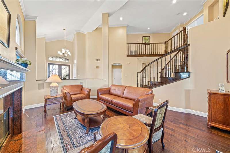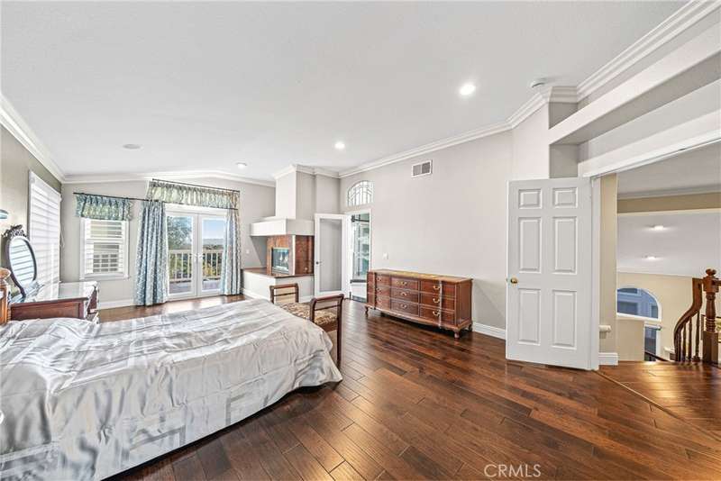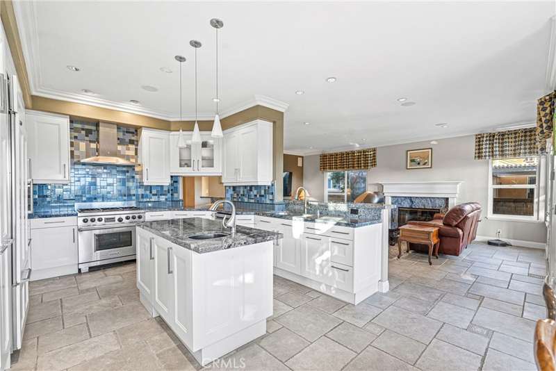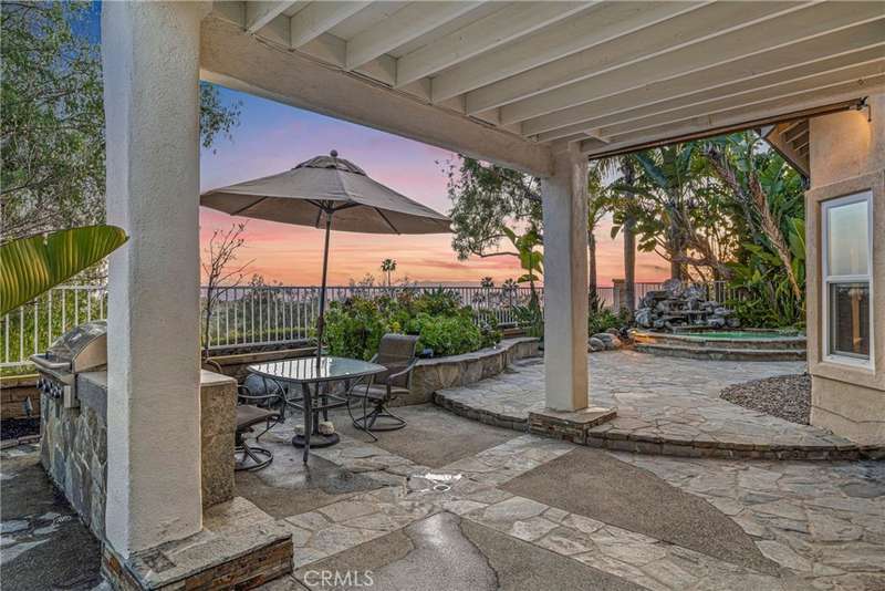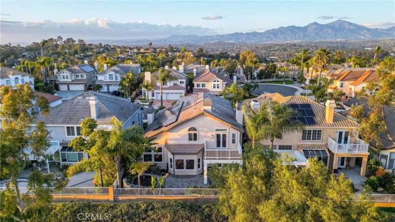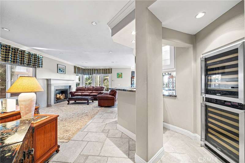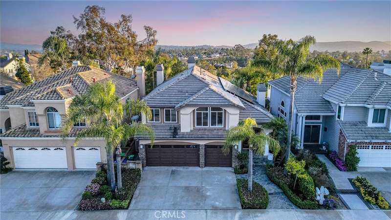 Showcasing unmatched luxury and sweeping bluff top views is this gorgeous residence which is situated at the heart of a quiet neighborhood cul-de-sac in the highly sought after hilltop enclave of Moulton Ranch in Laguna Hills. This is the one! With high-end finishes throughout, a downstairs ensuite bedroom, a custom hardscape view yard with an in-ground spa with waterfall and a truly enviable floor plan don't miss this chance. Starting with great curb appeal, including the custom stonework hardscape, mature planting beds and a grassy lawn enter through stunning custom French doors into a soaring vaulted ceilings foyer and formal living room. With great light from large yard view windows, a focal point fireplace - the first of three in the home - and ample space to spready out the formal living room is open to the formal dining room with large patio view windows which flood these formal spaces with a wealth of afternoon natural light. Off of the dining room is the chef's kitchen which has upgraded cabinetry, top-tier stainless steel appliances, a central island with possible bar seating and a dedicated task sink and a bar peninsula that extends all the way to an adjoining dry bar with stacked wine refrigerators. The kitchen also features a sizeable casual eat in area and view windows out to the patio. Sharing the great room vibe is an oversized family room which has an abundance of space, the second hearth, and is open to the dry bar making this the perfect place to entertain. With French doors out to the patio deck this space offers true indoor/outdoor living. A downstairs ensuite bedroom with step in shower, a guest half bath and an inside laundry room completes the lower level. Upstairs is a large second family room space and 3 additional bedrooms that start with the spacious primary suite which has a stunning spa like ensuite with a custom dolphin shower enclosure, granite counters, a privacy water closet door, a walk in closet and great light. A cozy third fireplace and a private panoramic view deck complete this must-see primary retreat. Two additional bedrooms and an updated guest bath complete the upper level. Featuring an attached 3 car garage, a 3 car driveway, and countless upgrades, make sure you see this home! Minutes from a local neighborhood park, great schools, shopping, dining and commuting options, the beach and everything South County has to offer don't miss this opportunity!
