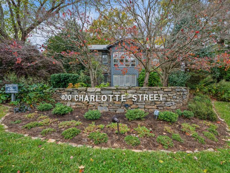 RARE Offering ? Includes a Detached, Separately Deeded Garage! Discover the best of Asheville living in this rarely available condominium at 400 Charlotte Street, offering sweeping views of the Grove Park Inn golf course, its tranquil water feature, and the majestic southwestern mountains beyond. Perfectly positioned on the golf course side of a quiet, private 20-unit community?just one mile from downtown Asheville?this no-step, zero-grade entry home blends comfort, convenience, and potential in one of the city's most coveted locations. A RARE detached, separately deeded garage conveys with the property?providing exceptional value, extra storage, EV Drip Charger and the convenience of private parking, a true luxury in this desirable community. Step inside to a spacious, light-filled floor plan featuring 3 bedrooms and 3 full baths, including two generous primary suites. The first primary suite offers a cozy sitting area, two walk-in closets, and an elegant en suite bath with separate tub and shower. The open-concept living and dining areas center around a stunning stone, wood-burning fireplace and flow effortlessly onto a large covered porch?the perfect spot for morning coffee or evening sunsets overlooking the mountains and golf course. Freshly waiting for your personal touch or modern updates, this home offers incredible potential in a truly unbeatable location. Charlotte Street Condominiums is a pet-friendly community offering a peaceful, park-like setting just moments from Asheville's vibrant downtown shops, restaurants, and cultural attractions. (No short-term rentals permitted.) Opportunities like this are few and far between?don't miss your chance to make this mountain-view retreat your new home in Asheville!
