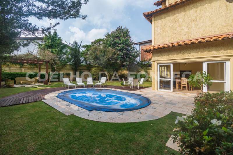 Casa em Condomínio no bairro Aldeia da Serra com 434m² área construída, 4 dormitório(s), 4 suíte(s), 4 vaga(s), 5 banheiro(s), piscina, escritório, ar condicionado, dep. de empregados, varanda.