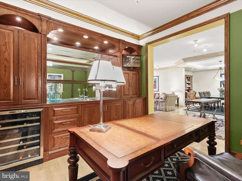 Introducing this absolutely exquisite condo in the highly coveted Cliffside in the Bluffs at Quarry Lake community, offering two luxurious bedroom suites and spectacular views of Quarry Lake and the scenic surroundings. Positioned on the third floor of a secure building, this home makes an immediate impression with a welcoming foyer highlighted by intricate crown molding and hardwood floors that carry into the main living areas. An open concept design allows sunlight to stream throughout, creating a warm and inviting atmosphere. Entertain with ease in the dining room, where a lighted tray ceiling provides a touch of sophistication and sets the perfect backdrop for memorable gatherings. Culinary enthusiasts will appreciate the redesigned kitchen, thoughtfully appointed with granite countertops, two pantries, and a custom island featuring a built-in bench for casual dining. A suite of stainless steel appliances, including a double wall oven, upgraded refrigerator, and electric cooktop, completes the chef's dream space. Relaxation comes naturally in the expansive living room, anchored by a cozy electric fireplace and extending into the den framed with floor-to-ceiling windows. Sliding glass doors open to a private balcony, where tranquil Quarry Lake vistas create an incredible setting for morning coffee or evening sunsets. The primary suite features a tray ceiling, balcony access, and two closets, including a spacious walk-in. The primary bathroom has two vanities, a soaking tub, a walk-in shower, and a separate water closet. A second suite is equally impressive, with its own balcony access, two closets, and a private ensuite bathroom with a walk-in shower. Additional comforts include a convenient laundry room, a stylish half bathroom, and an office designed with custom lighted built-ins and a wet bar, ideal for both work and entertaining. Life in this exceptional gated community offers peace of mind comforts, with fantastic amenities including the Lakeshore Club with a fitness center and entertainment spaces, an outdoor pool, tennis court and more. Quarry Lake shopping center is moments away, with an array of dining, shopping, and entertainment options to complement your lifestyle, with beautiful walking trails along the lake. Two assigned garage parking spaces (33A and 33B), along with a storage locker, provide practicality and convenience to complete this remarkable home.