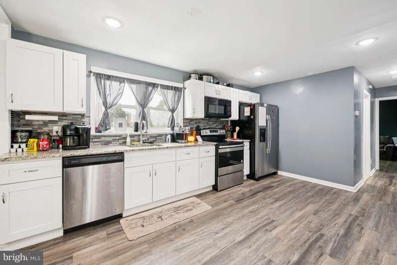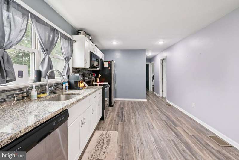 Charming Eastampton Ranch Backing to Hollyville Park! This beautifully updated ranch home in Eastampton Township offers comfortable one-story living with modern style and convenience. Featuring 3 bedrooms and 1 full bathroom, this home is perfect for first-time buyers or those looking to downsize without sacrificing comfort. Renovated in 2019, the home includes laminate wood flooring throughout, creating a warm and inviting atmosphere. The updated kitchen is a true highlight with white shaker-style cabinets, granite countertops, and a tile backsplash. The bathroom features elegant tile work, a modern vanity, and sliding glass doors on the tub, adding a touch of luxury. The spacious family room room is filled with natural light thanks to raised ceilings and French doors, making it a bright and welcoming space for relaxation or entertaining. The partially finished basement provide plenty of versatile space ideal for a home gym, playroom, or media area with an appealing industrial-chic vibe thanks to the exposed overhead pipes. Outside, the fully fenced yard is perfect for pets or play, and the deck is an excellent spot to enjoy overlooking the propertys quarter-acre lot. Beyond the fence, youll find the township park, offering fun and recreation just steps from your backyard.