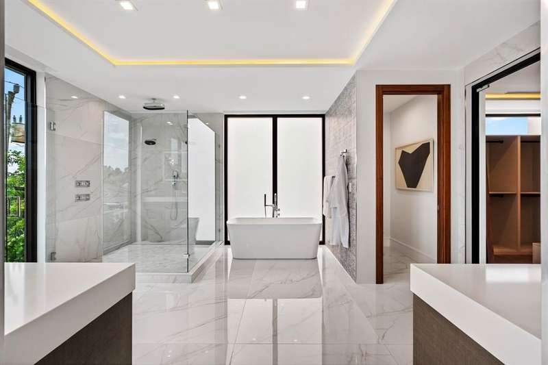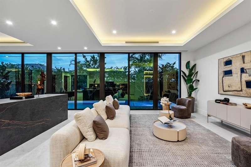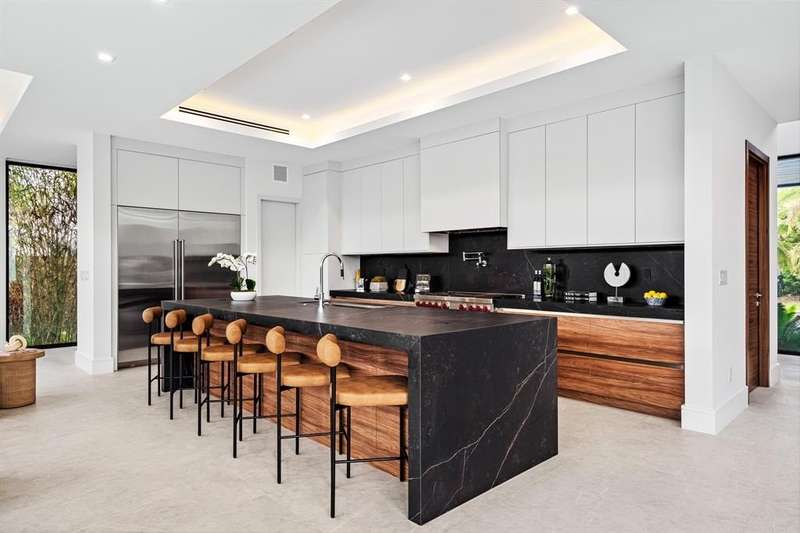 Unparalleled luxury with 360° VIEWS, 1,500 sq. ft. 3rd floor terrace. Newly completed four-bedroom, five-and-a-half bath masterpiece. Every detail has been thoughtfully crafted to enchant the most discerning buyer in this custom built home. Open, light-filled space where indoor and outdoor living blend seamlessly. The gourmet kitchen, with top-tier appliances and a spacious island, invites you to entertain with ease. The main suite, a serene retreat, featuring a spa-like bath with views of the lush backyard and pool. Each bedroom offers an ensuite bath for ultimate privacy. The third-floor walk around Sky Lounge with a full bath, could be a bedroom. Outdoor living shines w/2 outdoor kitchens, covered patio, and pool—perfect for coastal living. Pier 66 Hotel & Restaurants only blocks away.