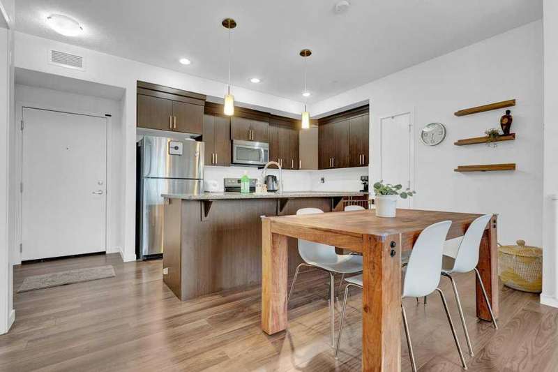 Stunning and immaculate condo in a highly sought-after neighborhood! Located in the vibrant New Brighton community, this gorgeous ground-floor unit offers a bright, open-concept layout. The spacious kitchen features granite countertops, stainless steel appliances, ample cabinetry, and a generously sized pantry. With 2 bedrooms, 2 full bathrooms, and a laundry room, this home has it all. Enjoy breathtaking views of the West Pond and pathways from the living room and both bedrooms. The master suite boasts a luxurious ensuite and a walk-through closet. All bathrooms are equipped with granite countertops and undermount sinks for an elegant touch. The covered patio is ideal for BBQs and entertaining, while the secured underground heated parking provides convenience year-round. This condo is close to schools, parks, restaurants, and numerous other amenities. Don’t miss out—schedule your viewing today