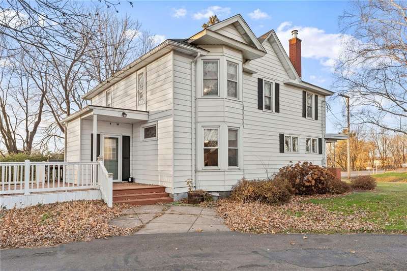 Welcome to this charming turn-of-the-century home in the heart of Cumberland. This spacious property features beautiful hardwood floors, original woodwork, and a cozy gas fireplace in the living room. Enjoy a bright main-floor family room, an eat-in kitchen, convenient main-floor laundry, and a half bath. Upstairs you'll find five bedrooms, offering plenty of space for family, guests, or home office needs. Relax on the backyard deck overlooking the large yard with picturesque views of town from its elevated setting. Located close to the Beaver Dam Lake boat landing and walking distance to downtown shops, dining, and schools - this home blends historic charm with everyday convenience.