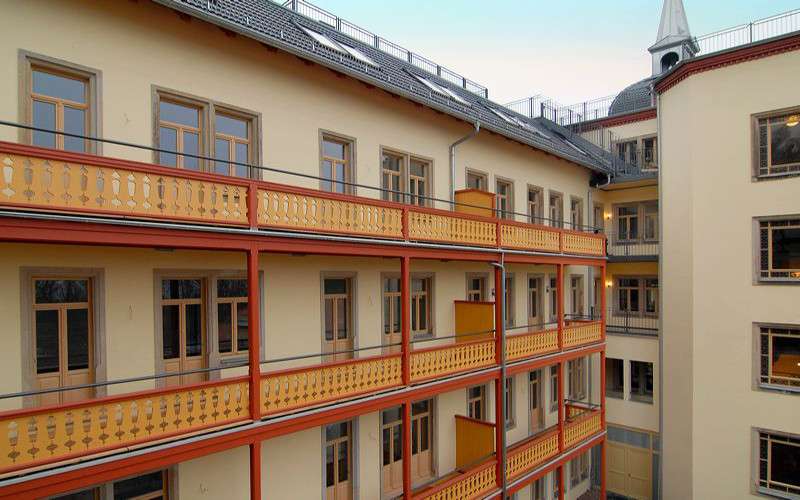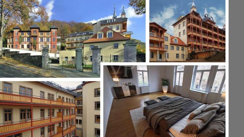 ***A dream home in a historic ambience*** In this beautiful former sanatorium building, built by Eduard Bilz, we have found a new owner for this exceptionally beautiful 3-room apartment. The stately property is nestled in the vineyards in a prime location in Radebeul. The apartment, with its 116m² of living space, is located on the 3rd floor and offers 3 rooms and 2 bathrooms, conveniently accessible via an elevator. All rooms can be accessed via the hallway, which guarantees a pleasant living environment with high ceilings and large windows in every room. It should also be noted that all rooms have access to balconies or the conservatory. The large living room and the children's room have access to the large balcony with a view of the property entrance and the vineyards. Meanwhile, the bedroom, with its separate dressing area, offers a view of the adjacent forest. The spacious kitchen has access to the conservatory, where there is a lovely dining area. During the refurbishment, great importance was attached to exclusive features such as parquet and natural stone floors, marble tiles in the bathrooms and wooden windows with double glazing. The 2 bathrooms are tastefully tiled and each has a shower. The large bathroom next to the bedroom also has a bathtub and access to the balcony. The apartment is currently rented for an indefinite period. The rental income amounts to EUR 16,992 per year including parking space and operating costs. If you are interested in this exceptional property, we will be happy to provide you with detailed documentation and arrange a viewing.