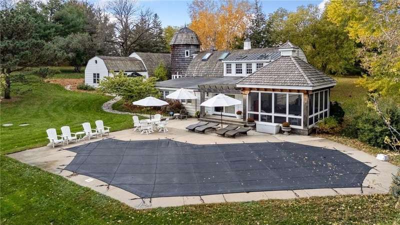 Exceptional and rare opportunity to own this 3.11 acre estate setting on beautiful North Arm. Utterly private and tranquil with gorgeous trees, panoramic views and permanent dock for 32ft vessel. Enjoy this solid, New England pool-side residence as it is, remodel, or build your dream home adjacent to other established, upper-bracket, acreage estates. Prime Orono location minutes from Wayzata and 494. Victoria Estates, just six private residences, adjoins a magnificent DNR-managed marsh with six slips, providing full access to Lake Minnetonka without lakefront taxes. Long-time owner has thoughtfully maintained and added to the charming farm-style house bursting with character, incorporating original barn with silo, three ensuites, four fireplaces, and lovely pool-side porch. Inground Dolphin pool has newer liner, mechanics, large patio-surround and magnificent views. This property is about quality of life: nature, wildlife, privacy and 14,530 acre Lake Minnetonka, yours to enjoy.