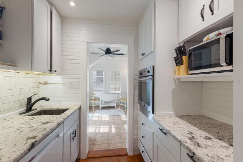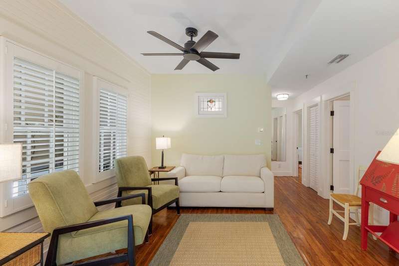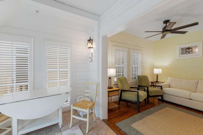 Charming first floor condo with a quaint cottage feel! Updated kitchen with new appliances and granite counter tops. Hot water tank is 2024 and AC is 2025. French entrance doors are hurricane impact. Enjoy al fresco in your enclosed patio! New pavers surrounding the condo and beautifully maintained flower garden will delight the senses. 2021 manufactured, rebuilt in 2024 golf cart included. In the heart of the Village of Boca Grande, this property is a quick stroll to the beach, restaurants and shopping. A truly perfect opportunity to have your little slice of paradise!