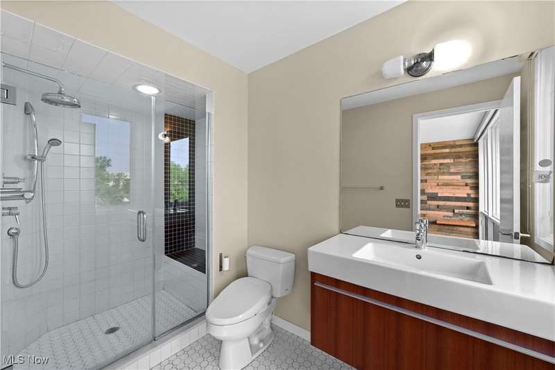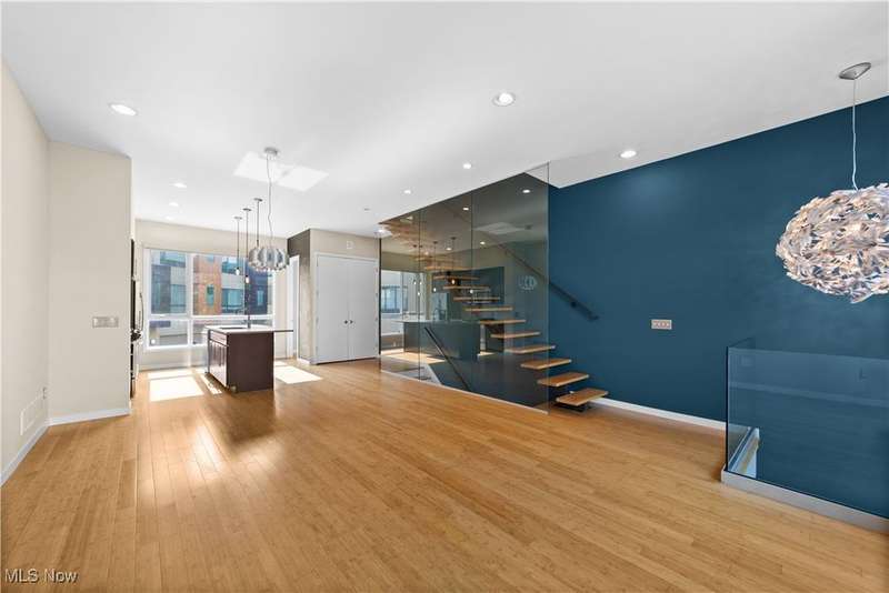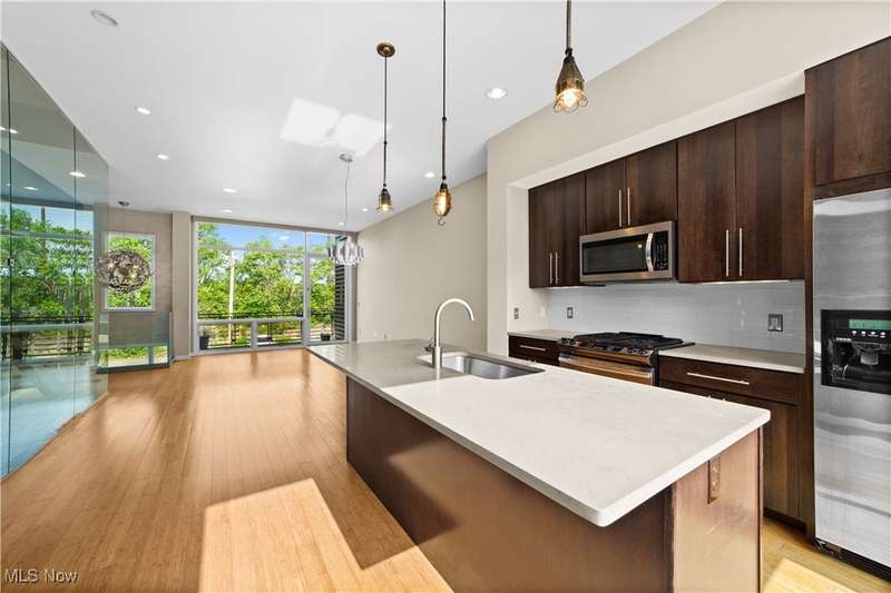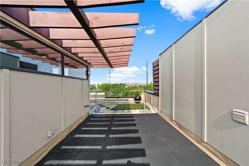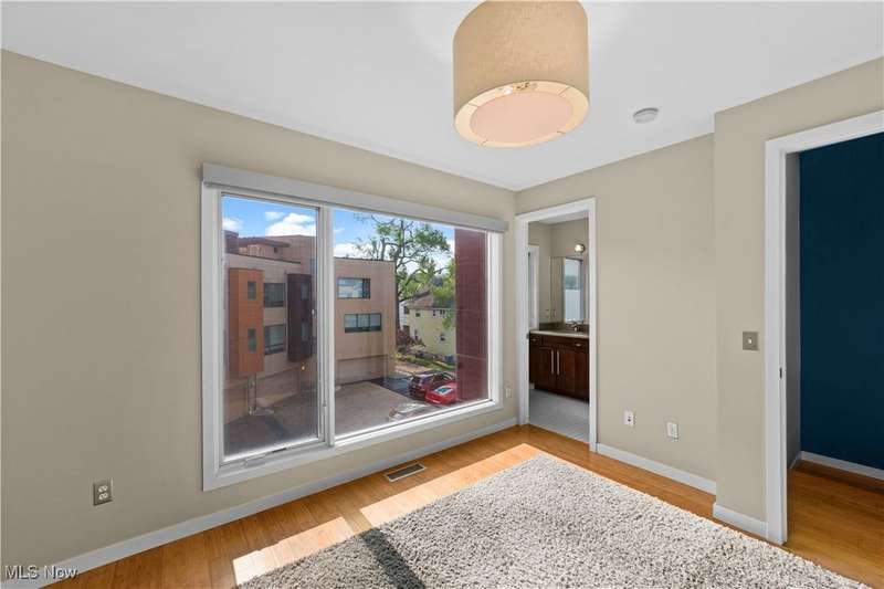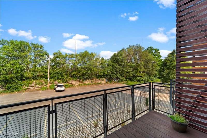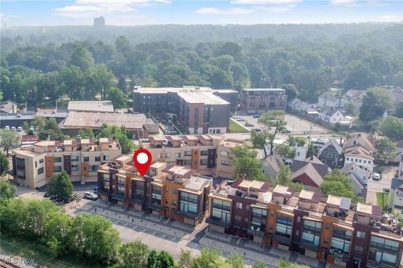 Are you ready to experience the best of Cleveland? Live in this stunning townhome in the heart of Little Italy / University Circle! This fabulous home features industrial-chic finishes and modern design with walls of glass, high ceilings, floating staircase, and floor to ceiling windows creating an enchanting light-filled residence. Beautiful open kitchen with wood cabinets, natural stone counters, huge breakfast island and all appliances included. Off the living room is a spacious balcony, and a half bath completes the main floor. Upstairs are 2 bedrooms and 2 full baths including the glamorous master suite with walk-in closet w/ custom built-ins, beautiful master bath with designer finishes and tile shower. SEE FLOORPLAN IN PHOTOS. The laundry room is conveniently located on the bedroom level and includes a stacked washer and dryer. When it's time to relax and unwind, head up to your private rooftop deck; the perfect getaway for morning coffee, a glass of wine, or entertaining friends while showing off views of University Circle. Just off the entryway on the ground level there is an bonus room which could be a home gym or office. 2 car attached garage with storage cabinets and electric opener. Short walk to restaurants, coffee shops, art galleries, and more in the Murray Hill district. Live in the neighborhood with Case Western Reserve University, University Hospitals, world class museums and dining destinations, and mere minutes from the Cleveland Clinic plus a short drive to Downtown Cleveland. 12 month home warranty included for peace of mind.