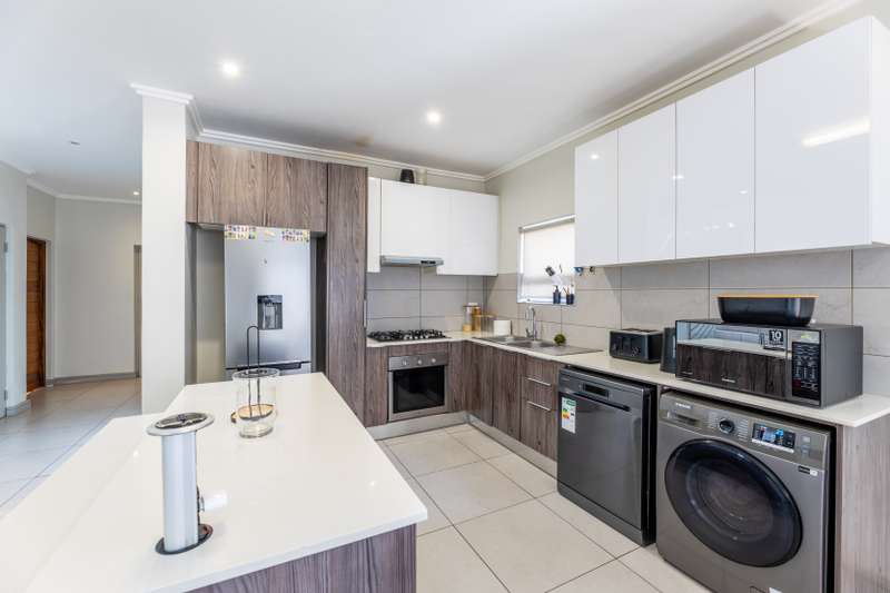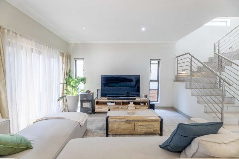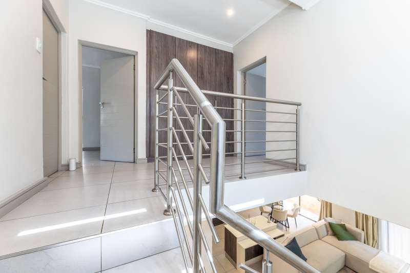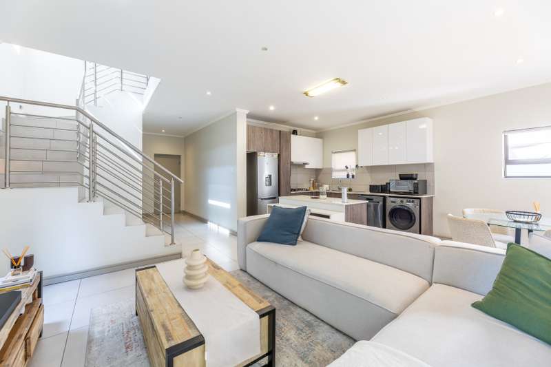 Modern 3-Bedroom Cluster in a Sought-After Bryanston Complex Price Negotiable! This beautifully designed 3-bedroom, 3.5-bathroom cluster home offers the perfect balance of comfort, sophistication, and practical living ideal for those seeking a secure and contemporary lifestyle. From the moment you step inside, you’re greeted by a spacious open-plan layout filled with natural light. The seamless flow between the lounge, dining, and kitchen areas is enhanced by elegant ceiling lighting, adding a touch of contemporary charm throughout. The sleek kitchen is a chef’s delight, featuring: • Gas stove • Space for two under-counter appliances • Double-door fridge space • Central island with ample storage and prep space ideal for both cooking and entertaining Glass doors lead out to a tranquil, private outdoor area, perfect for relaxing or hosting guests. Upstairs, all three bedrooms are en-suite and beautifully finished. The luxurious main suite boasts a walk-in dressing area and a full bathroom, while the second bedroom includes its own private balcony. Additional features include: • Guest cloakroom • Staff accommodation • Pet-friendly garden • Double automated garage with direct home access • 24-hour security with access control Located in an exclusive, well-maintained complex, this home offers peace of mind along with unbeatable convenience, just minutes from top schools, major roads, and shopping centres. Don't miss this opportunity to make this elegant home yours. Contact me today to arrange an exclusive viewing!