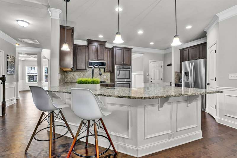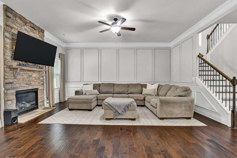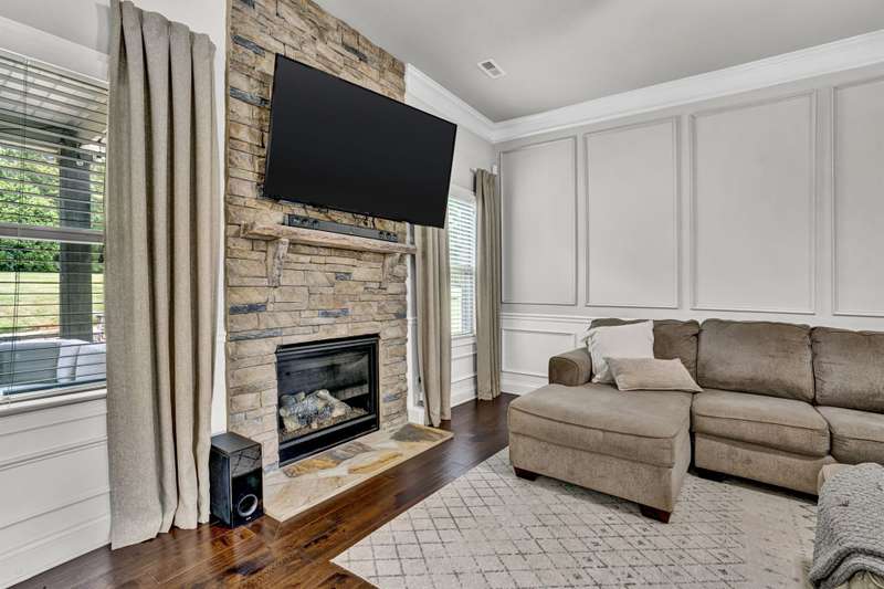 Priced to sell! Former Model Home with Exceptional Upgrades Near Mesa Soccer Complex Welcome to this stunning 5-bedroom, 3.5-bath all-brick and stone beauty, offering over 3,700 square feet of thoughtfully designed living space. Originally the model home, this property is loaded with premium upgrades and has been meticulously maintained throughout. Not a detail was spared with this one, from coffered and trey ceilings to the wainscoting and chair rail. Located in the desirable Stonewood Manor neighborhood, this home combines convenience, comfort, and style. The main-level primary suite provides a private retreat with a cozy fireplace, while the open-concept living areas are perfect for entertaining and everyday living. Upstairs, you'll find the remaining 4 bedrooms, 2 bathrooms, and an impressive rec room complete with a wet bar?ideal for movie nights, game day gatherings, or relaxing with friends. Step outside to your own backyard oasis featuring an extended custom patio with built-in firepit, perfect for year-round enjoyment. Located just minutes from shopping and dining in Five Forks and a stones throw to the popular Mesa Soccer Complex, this home offers the perfect blend of lifestyle and location. Don't miss this rare opportunity to own a former model with all the extras?schedule your private showing today!