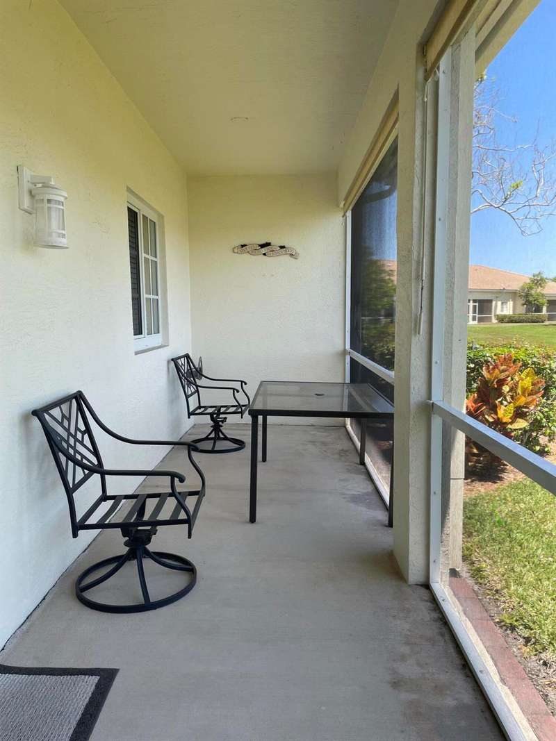Country club living without the membership fees! Spacious villa with open floorplan offers 2 bedrooms, 2 baths and a den/formal dining room. Unit has impact glass, new kitchen appliances, 2 year old water heater, 7 years left on roof certification, and expoxy floors in garage. Large covered patio overlooks a beautiful lake which is perfect to enjoy the florida sunsets. The Baywinds adult community offers 2 swimming pools, a resistance walking pool, hot tub, sauna, library, ballroom, media room, billiards room, fitness center, pickleball , tennis, bocce and shuffleboard courts. A full time social director and club house staff onsite.