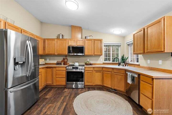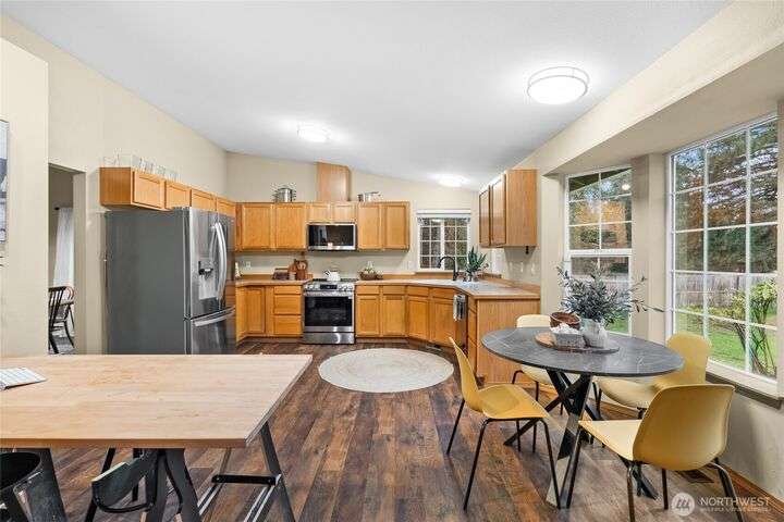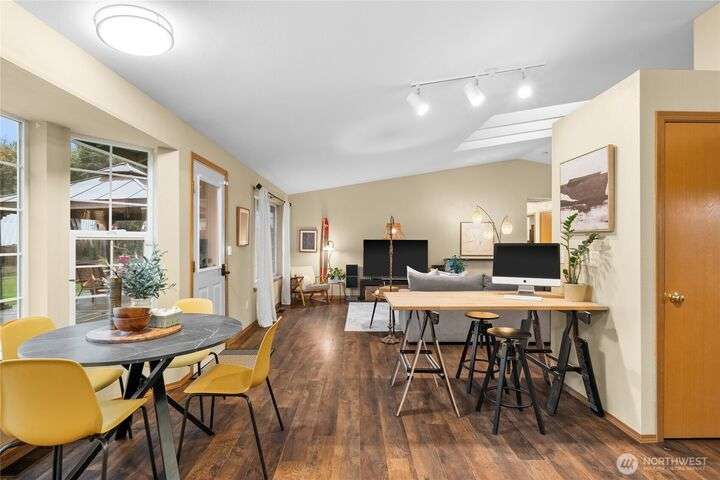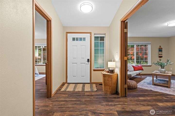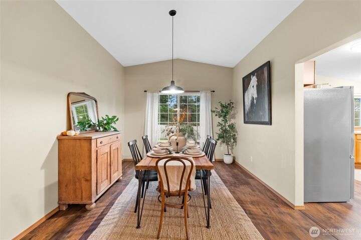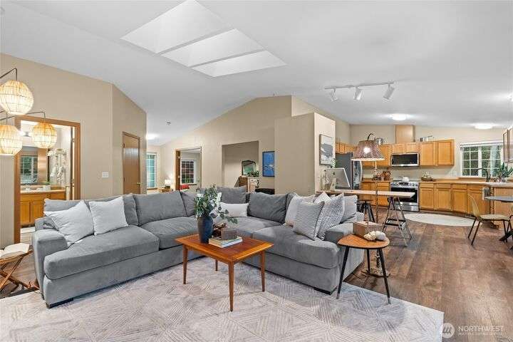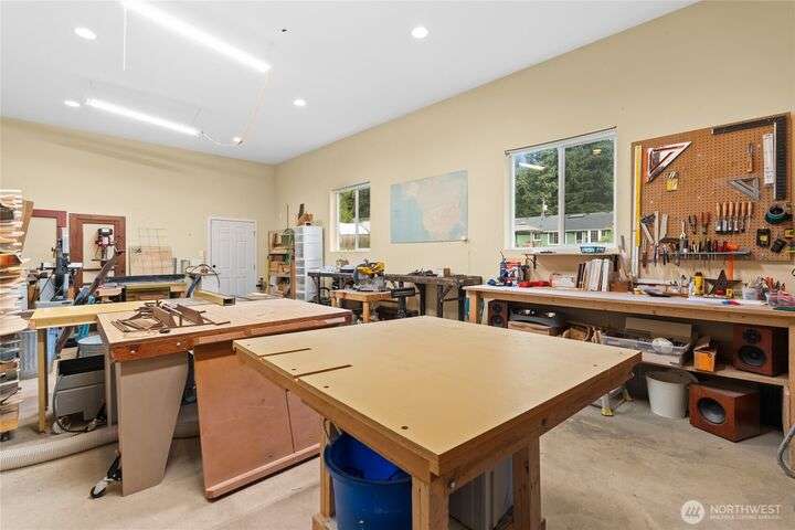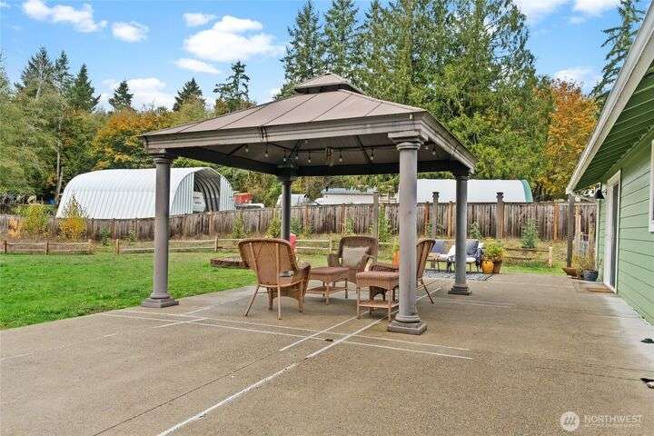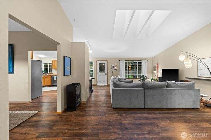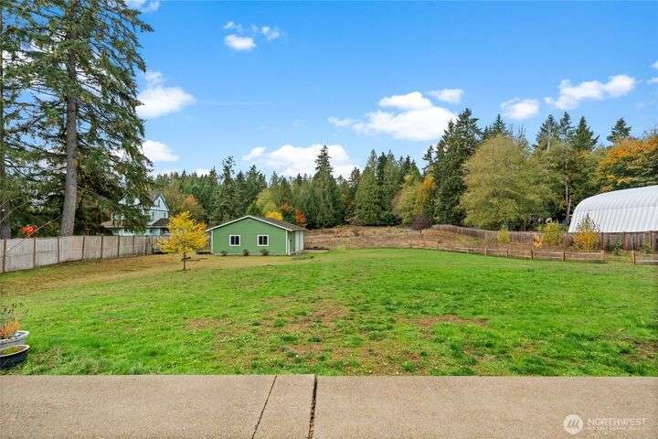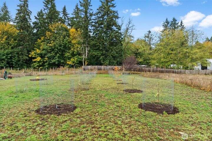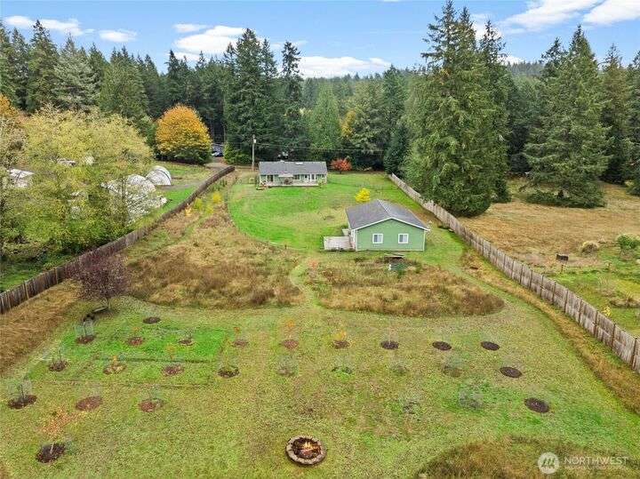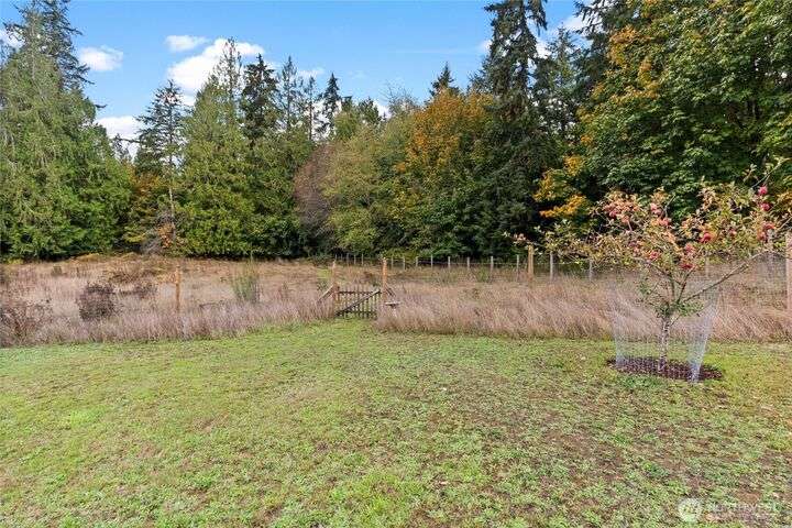 Fabulous light-filled rambler nestled on a serene 2.3-acre country estate. Step through the welcoming entryway into an inviting home that blends comfort and charm. Spacious living room, social kitchen, and formal dining flow seamlessly with new luxury laminate flooring throughout. Enjoy peace of mind with a brand-new HVAC system and updated appliances. Enormous primary suite opens to a sun-drenched patio—perfect for morning coffee or evening relaxation. Entertain under the pergola overlooking the lush, newly planted orchard w/fully fenced field—ideal for pets or play. In addition to a 2-car garage, you’ll love the massive 1,536 sq ft insulated and finished shop w/two bays for cars, boats, or RVs, plus a custom woodworking studio!