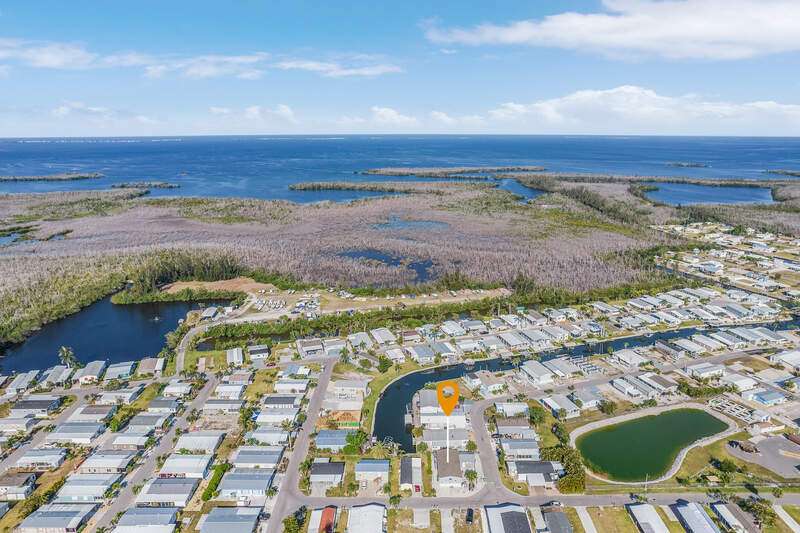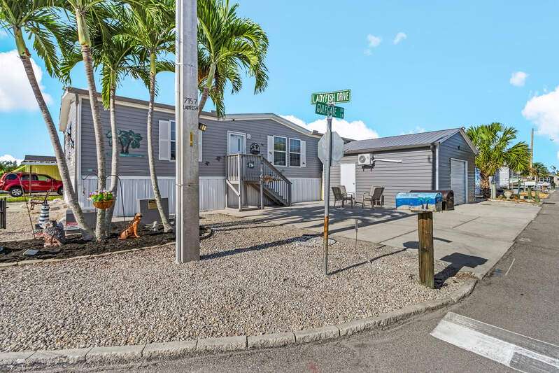Spacious 2023 mobile on a corner lot in Pine Island Cove. Oversized one car garage. Lots of parking, everything new, generator hook up, split floor plan, and inside laundry with extra storage. The great room makes this the perfect home for entertaining. Drive around in your golf cart and enjoy the clubhouse, pool, bocce ball, and pickleball courts. Or just visit with the neighbors. Community boat ramp for your use. Plus boat storage is available for $50 a year. This home has it all. Make your appointment to see it today.